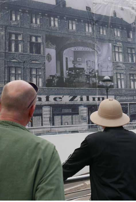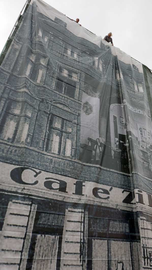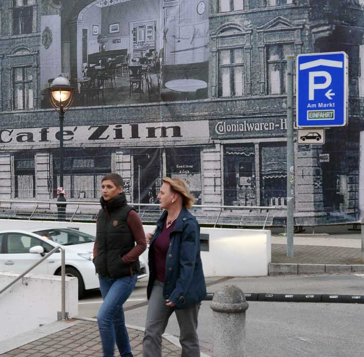 Als das Cafe Zilm wieder zu lesen war, herabgefallen, stand sie da und sagte, meine Mutter, heute 92, war noch dort, und ich werde kommen, wenn es wieder offen ist, von dort und hier telefonieren, ihr zu sagen, dass ich wieder dort sitze. Wo sie 20 war.