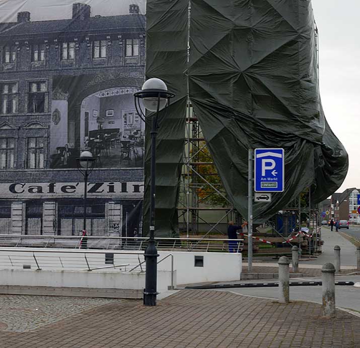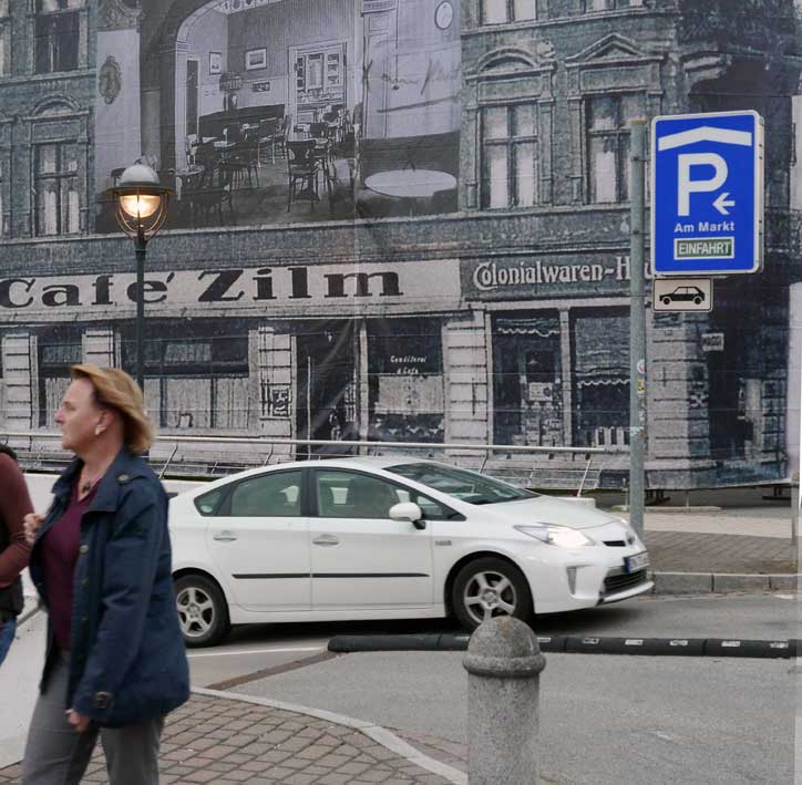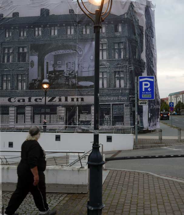 von innen geschaut aus dem Cafe Zilm der veränderet Platz