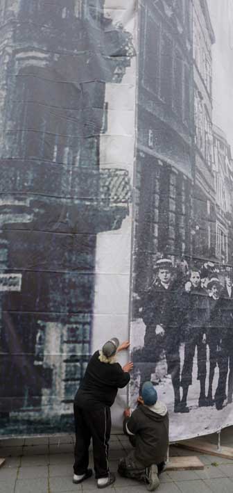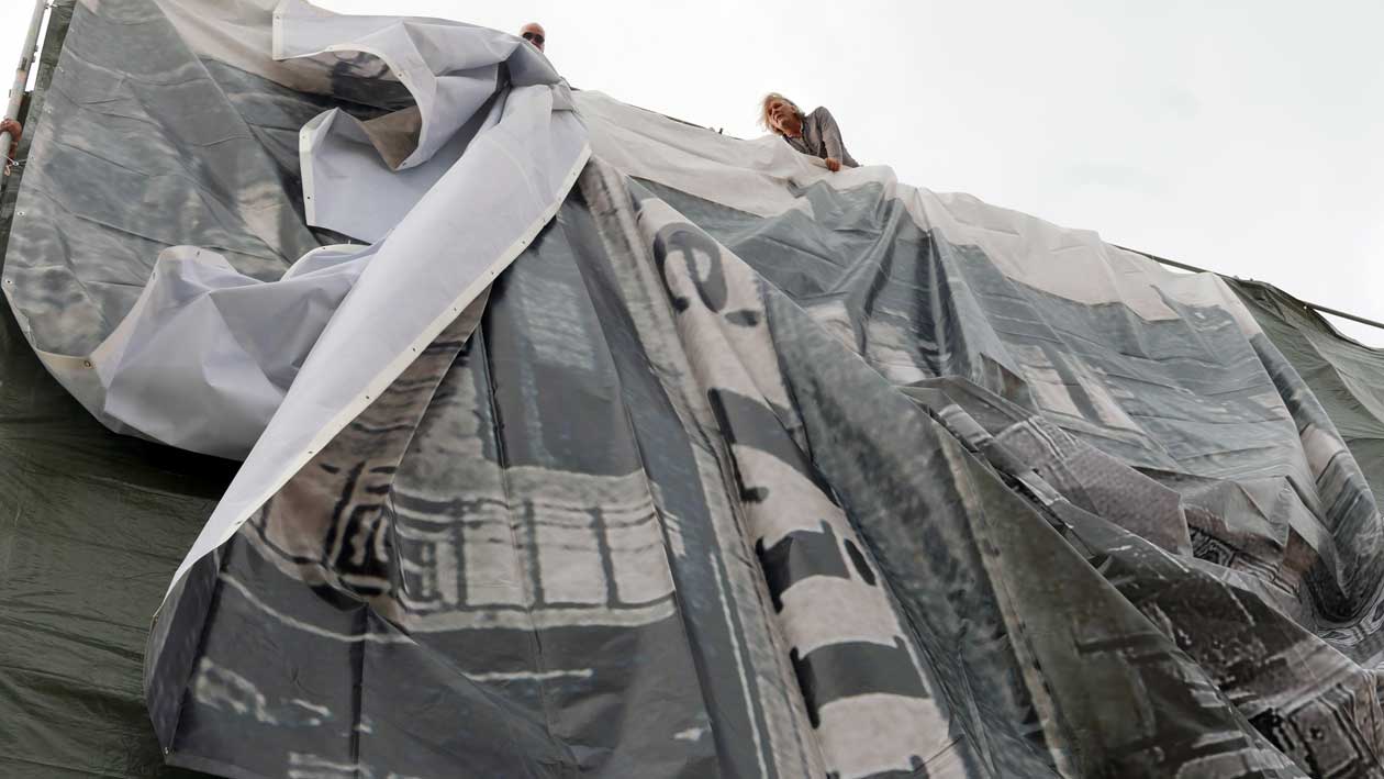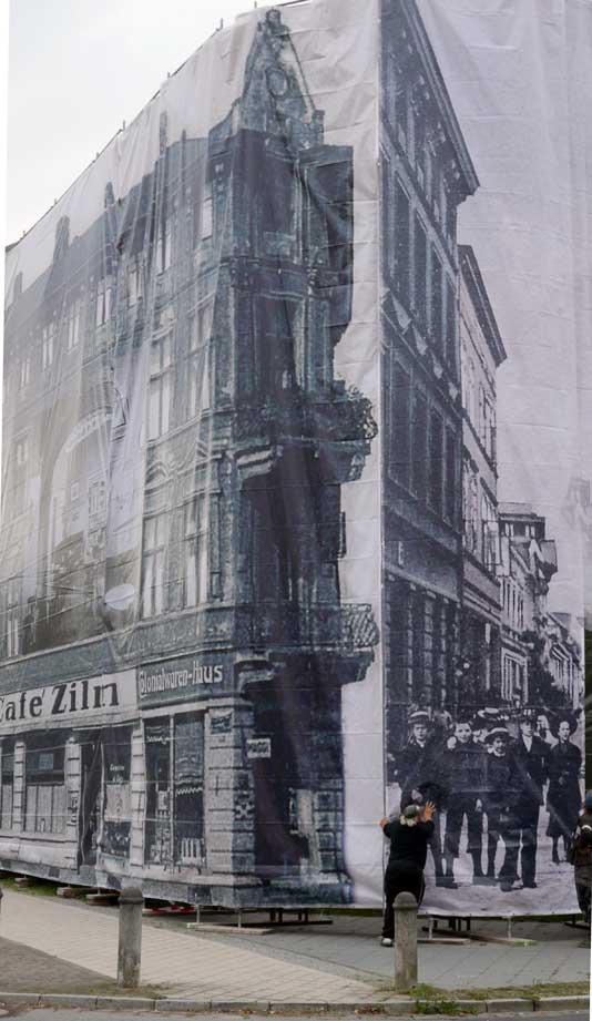 es ist verhältnismässig einfach Häuser zu zerstören, anzuzünden, was besteht, zu bombardieren, wenn der Befehl kommt, zu verhüllen - was aber geschieht, wenn wir sie wieder entstehen lassen, enthüllen, das Innere dann, das erleben, versuchen wir hier, das sie von innen leuchten, die Menschen dann auch