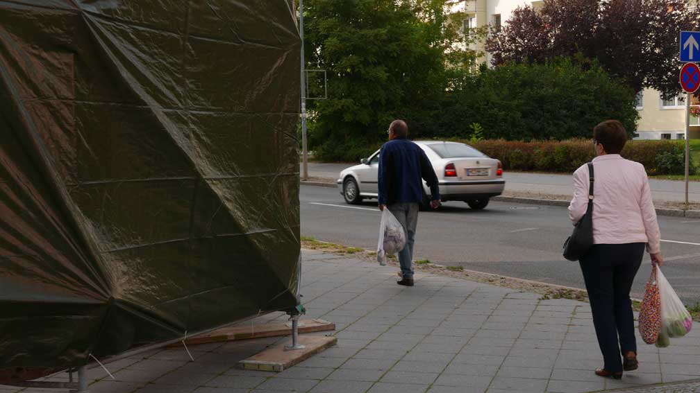 und wer hier zufällig geht sieht plötzlich anders aus mitten ib Demmin