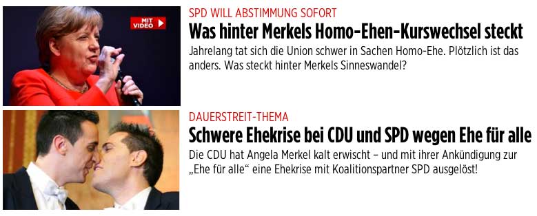12 Meldungen auf SPIEGEL online am Dienstag zum Leben der Lesben und Schwule und am Mittwoch die erste Meldung am frühen Morgen Bildzeitung>>>>>>>
