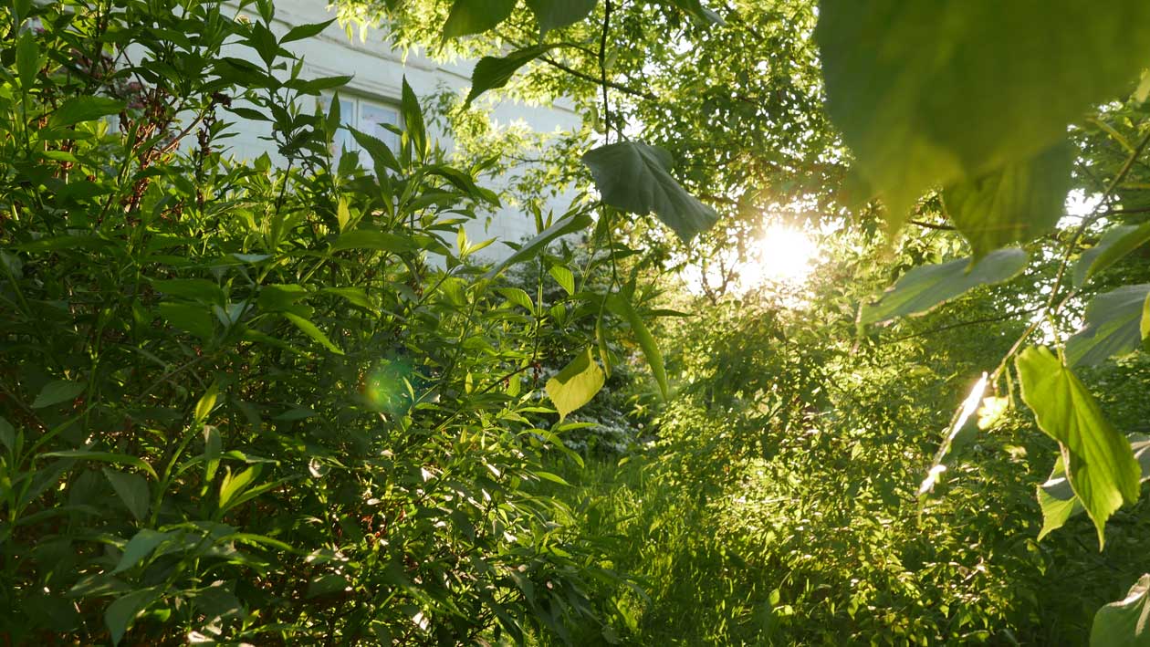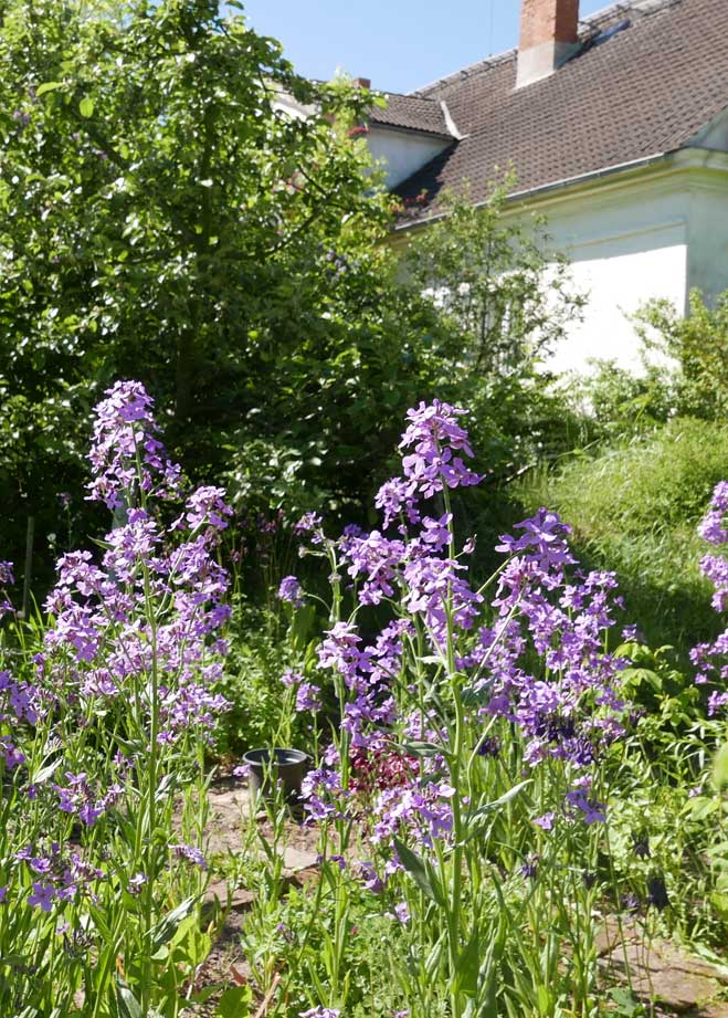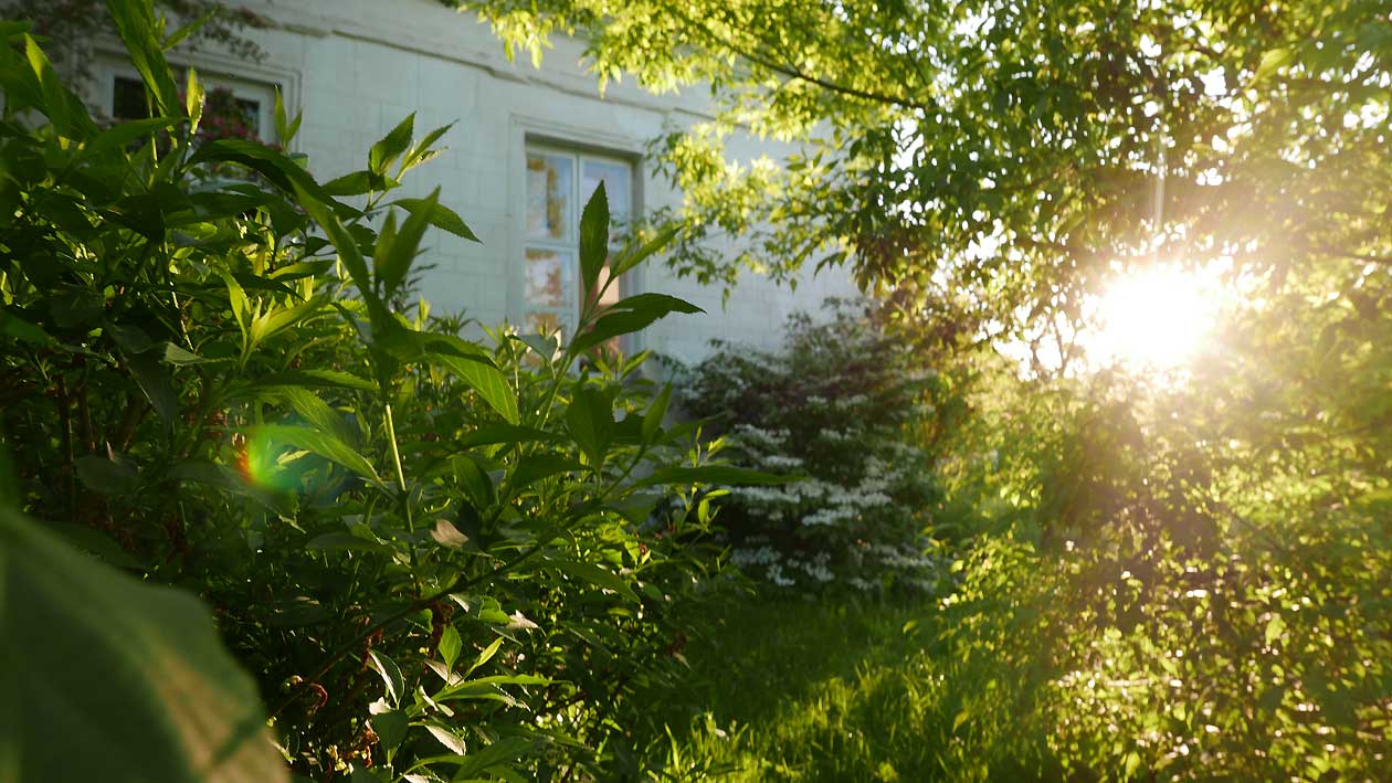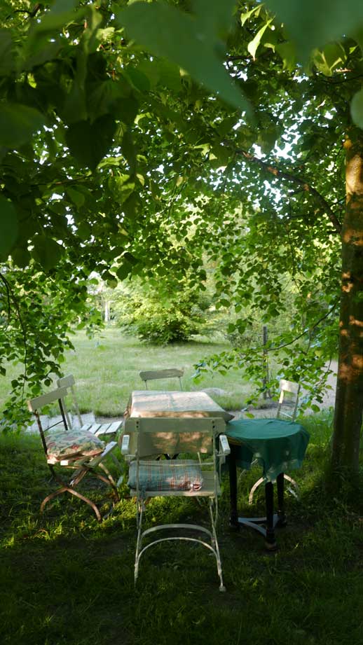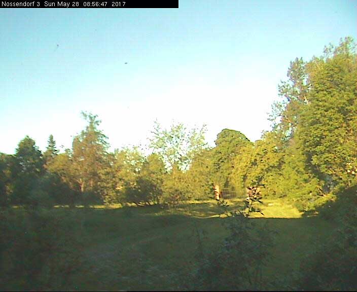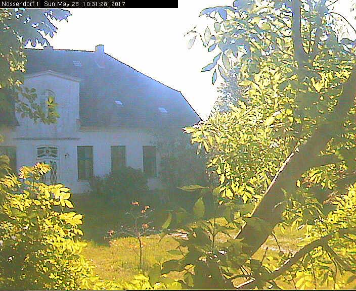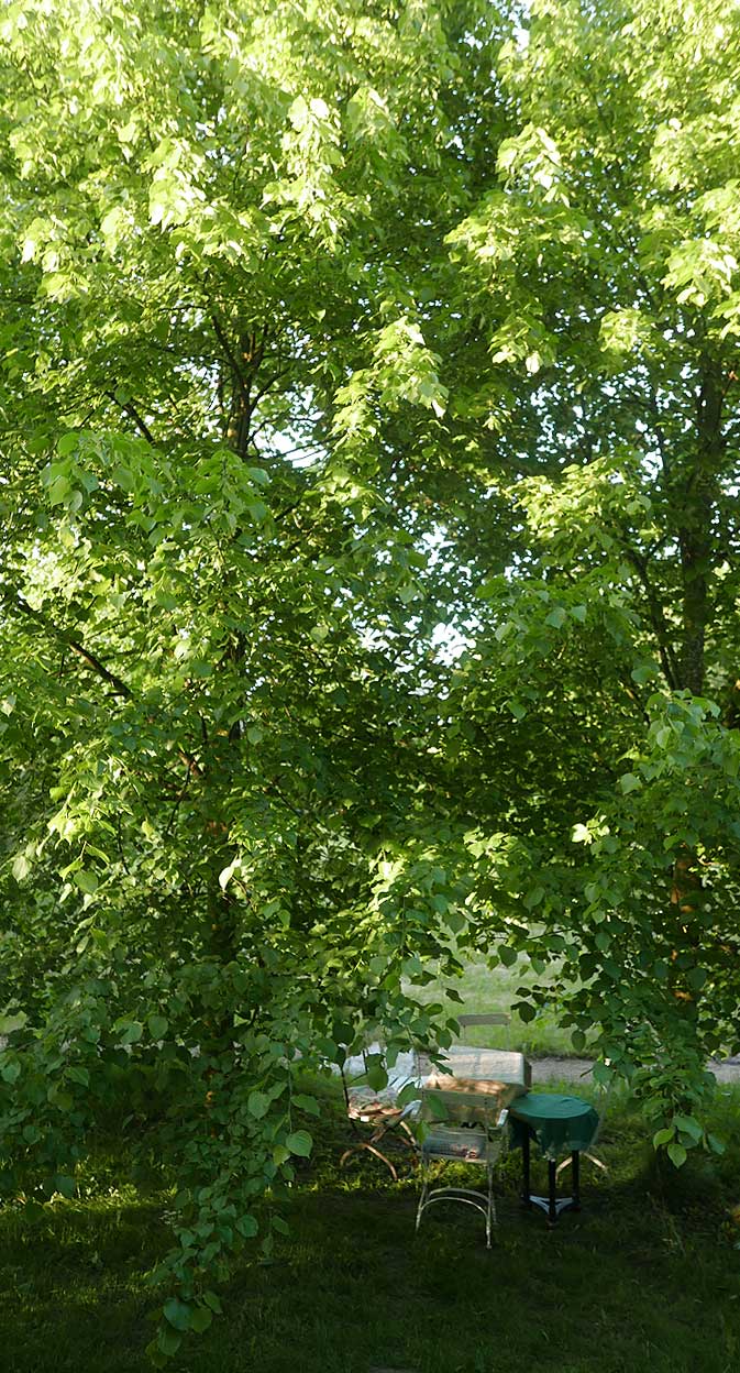 etwas später in der Sonne in der Mitte der zarte Wallnussbaum sich vom Frost langsam wieder erholend mit täglich Wasser