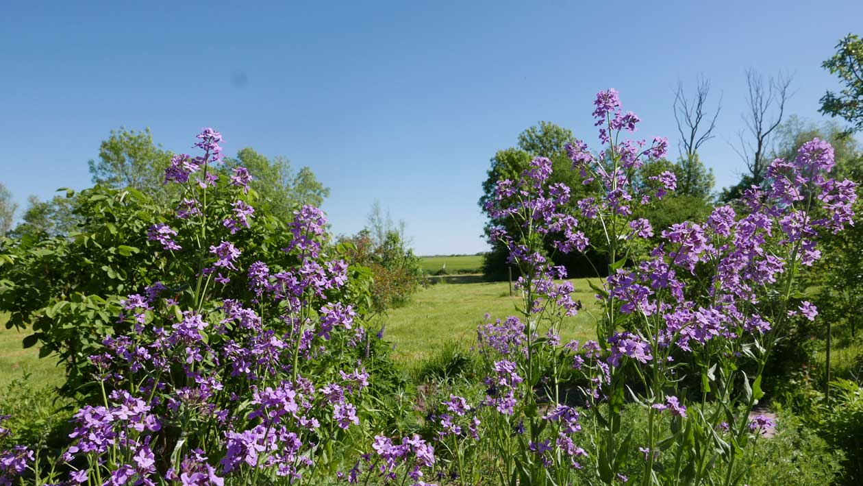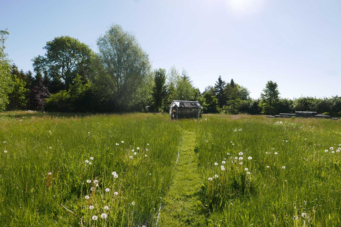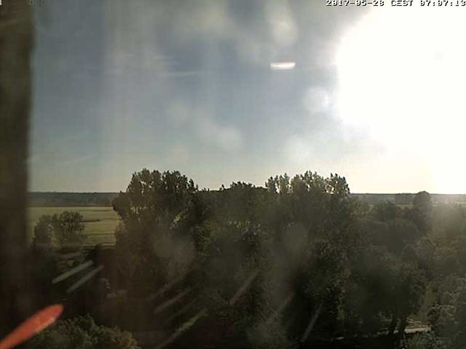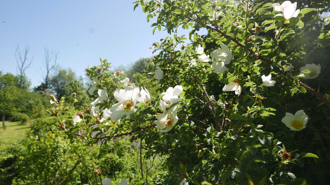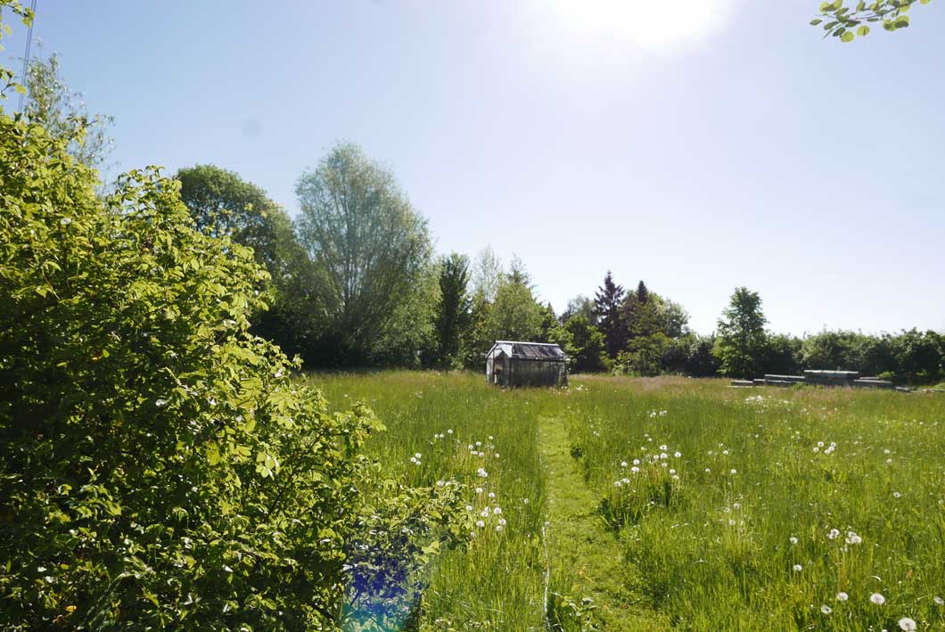 etwas später in der Sonne in der Mitte der zarte Wallnussbaum sich vom Frost langsam wieder erholend mit täglich Wasser