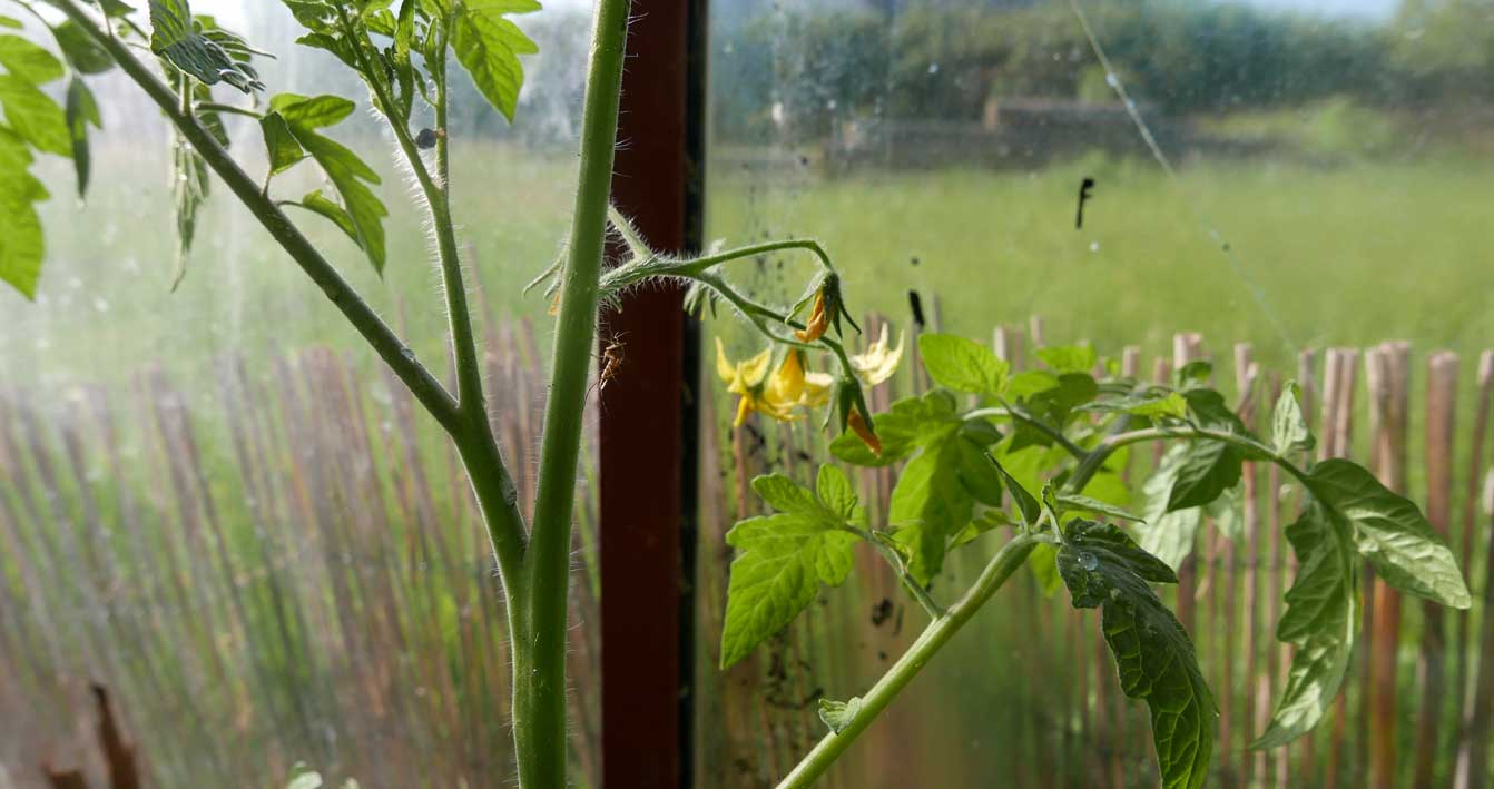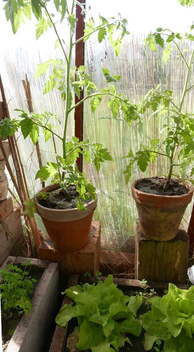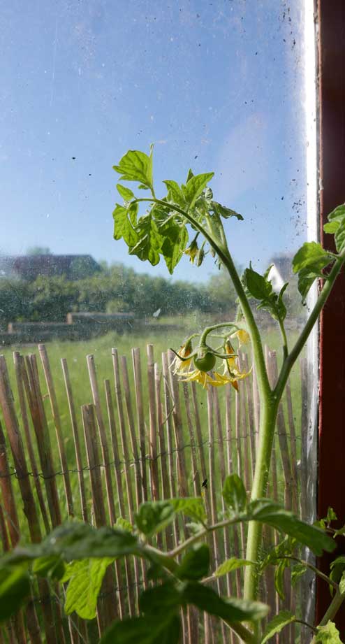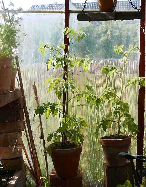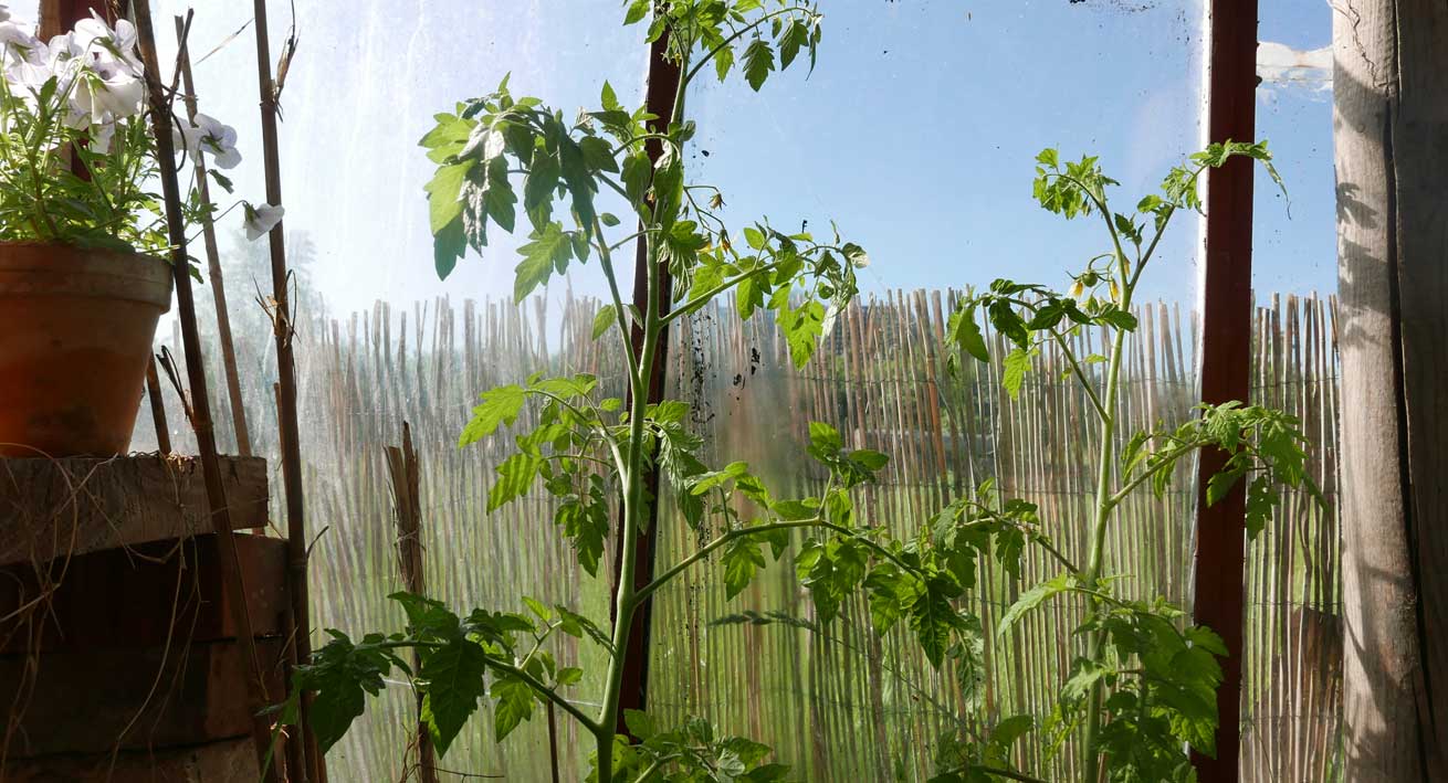 die Übersiedlung der Tomaten vom warmen Sonnenfenster des Hauses ins Glashaus
