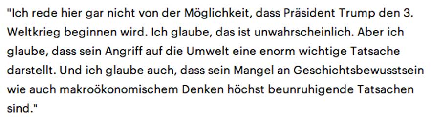 "ein 7 jähriger Rüpel, 3. Weltkrieg nein, aber der Angriff auf die Umwelt..." planetarischen Ausmasses, würde ich dazusetzen.