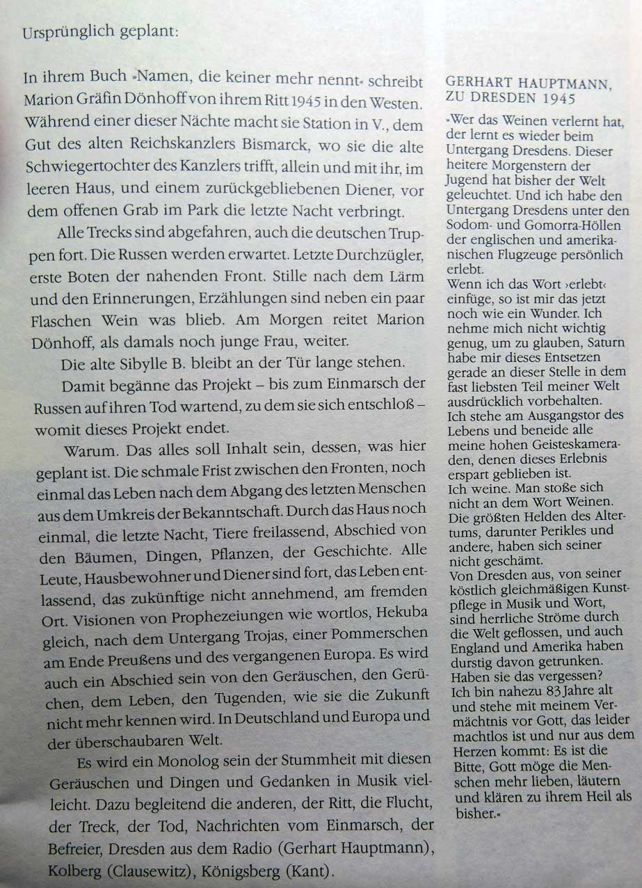 was sagt dieses Bild -und warum sonst Bilder, die nichts sagen- . Es ging um Ihr Buch "Namen, die keiner nennt"in dem die Menschen, ganze Dörfer ihres Schlosses auf der Flucht genannt werden, darzustellen auf der Bühne. Und darin ihr Ritt in den Westen 1945. Wie.