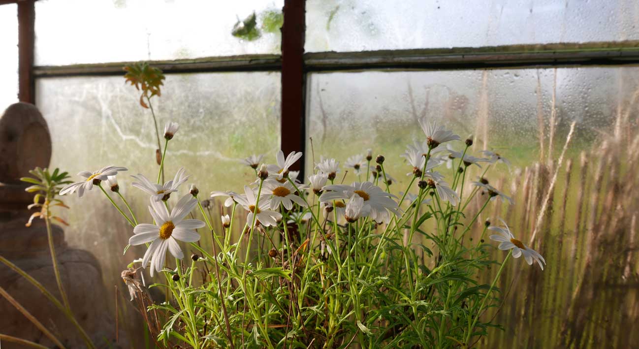 Das kleine Glashaus als Hütte neuen Lebens geht in den Winterschlaf.