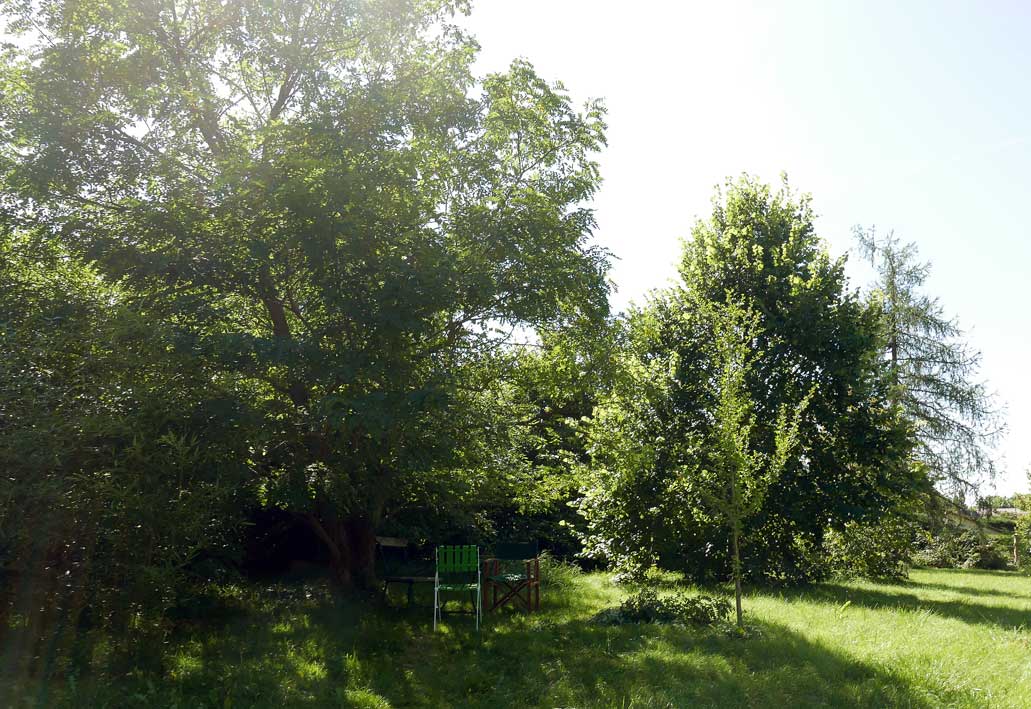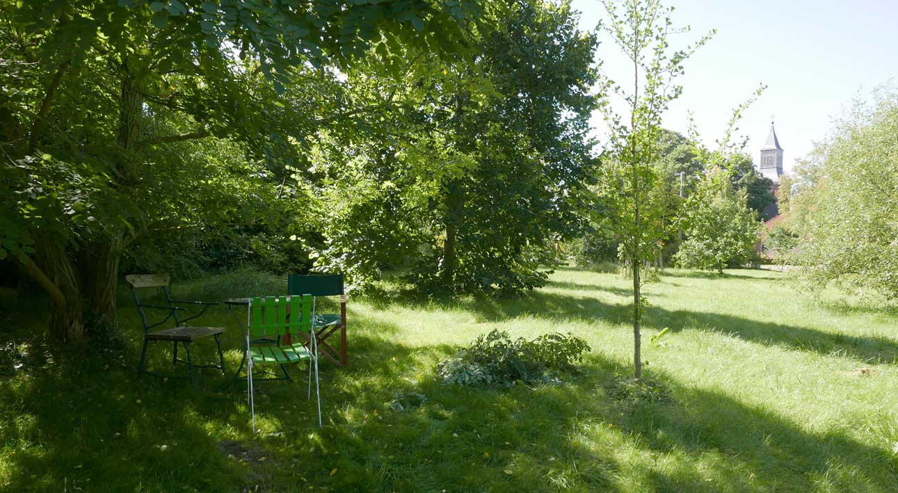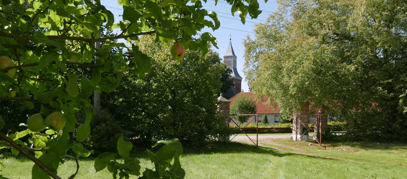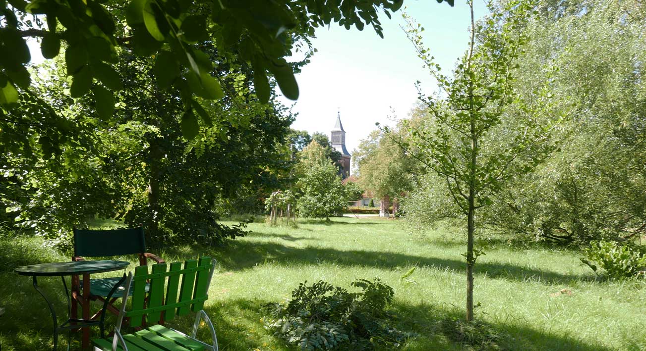 Der Turm der Kirche ist im Sommer verdeckt durch die Bäume aber immer da
