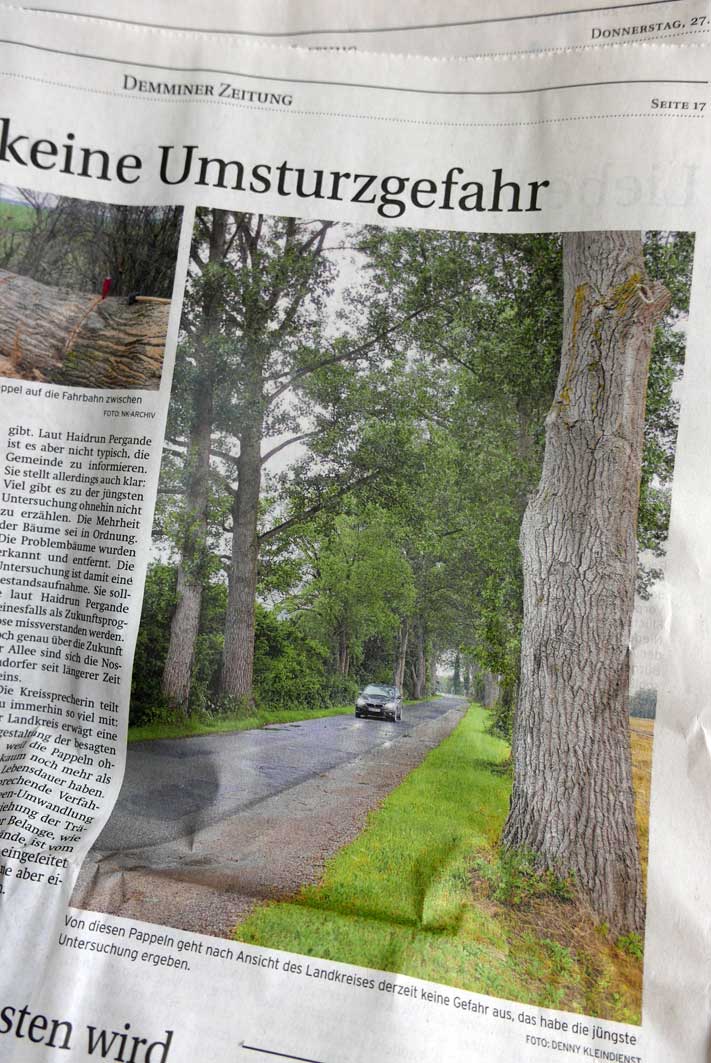 wieder es gehe Gefahr von den Bäumen aus, wollen sie sie alle weghaben. Den alten Zustand wieder herstellen von LPG - Wüste und ihre Kosten für die, die hier nun kultivierten. Denn mit der Natur fängt die Kultur an.