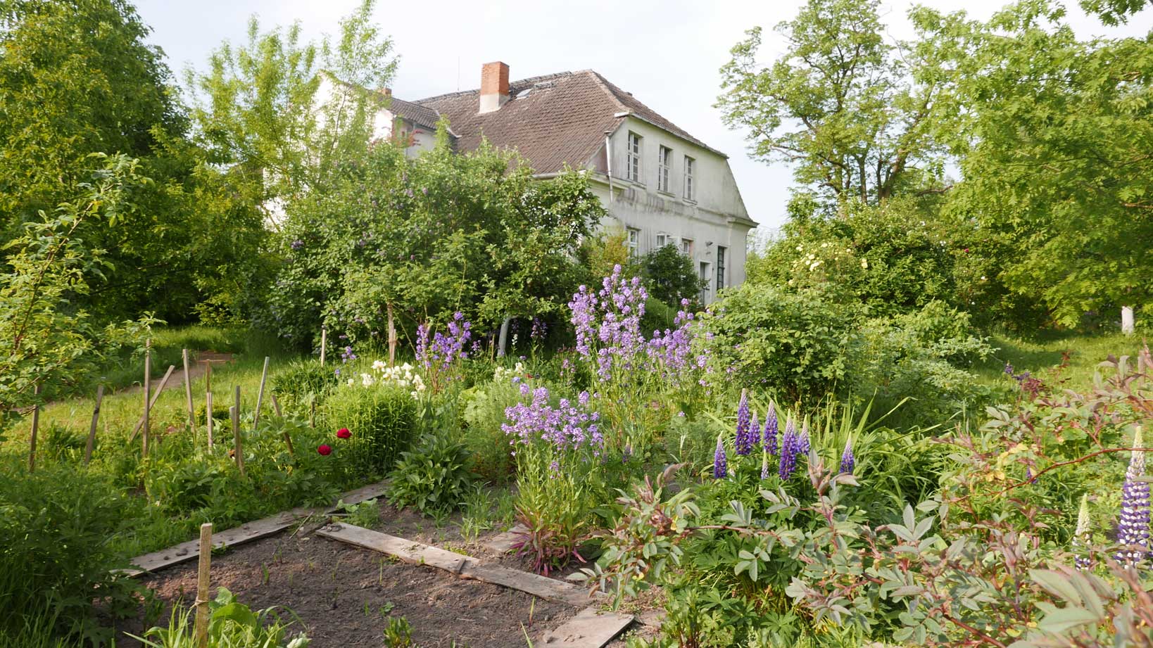 das ehem. Gutshaus auf dem Hamann'schen Hof als Kita zugewachsener Kinder Garten