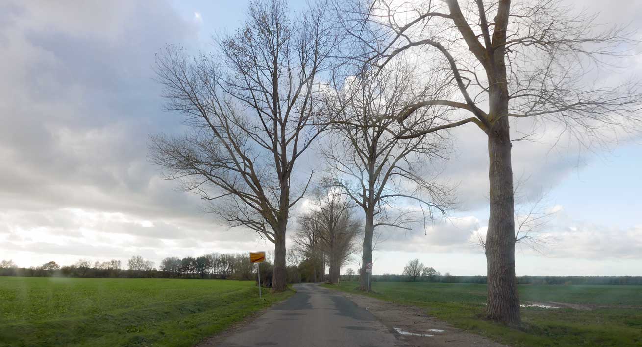 gleichzeitig der Blick auf die sogen. gefährliche Pappelallee von Nossendorf nach Volksdorf, dass selbst das Miniserium in Schwerin im Hilfe gebeten wurde mit einer Förderung deren Beseitung und eine Neuanlage zu zahlen.