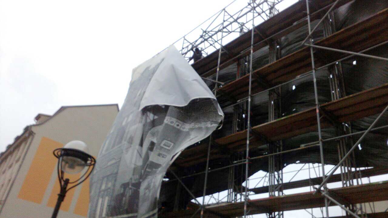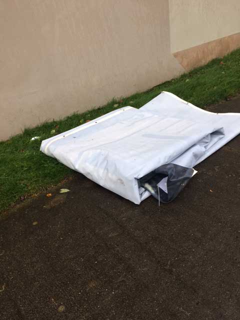 Gestern morgen Sonntag, den 29. Oktober kam die mail: Mussten abbauen die Ösen reißen bei dem Druck . Haben alles ordentlich zusammen legen können. Gefahr beseitigt!