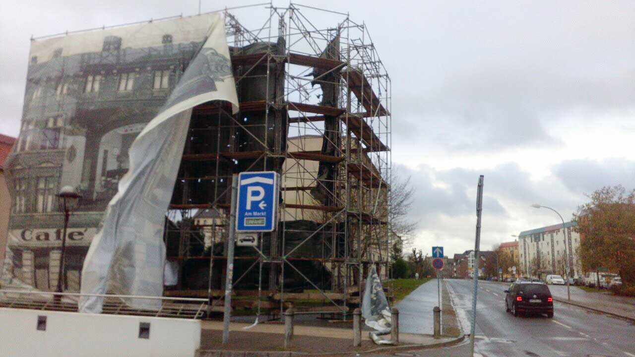 vor allem in Nord- und Ostdeutschland entwurzelte "Herwart" zahlreiche Bäume. Der Wind erreichte Geschwindigkeiten von bis zu 176 Kilometern pro Stunde uns hat er die Fassade des Hauses gekostet, das 4 Wochen in Demmin den Markt erfreute. Alle.