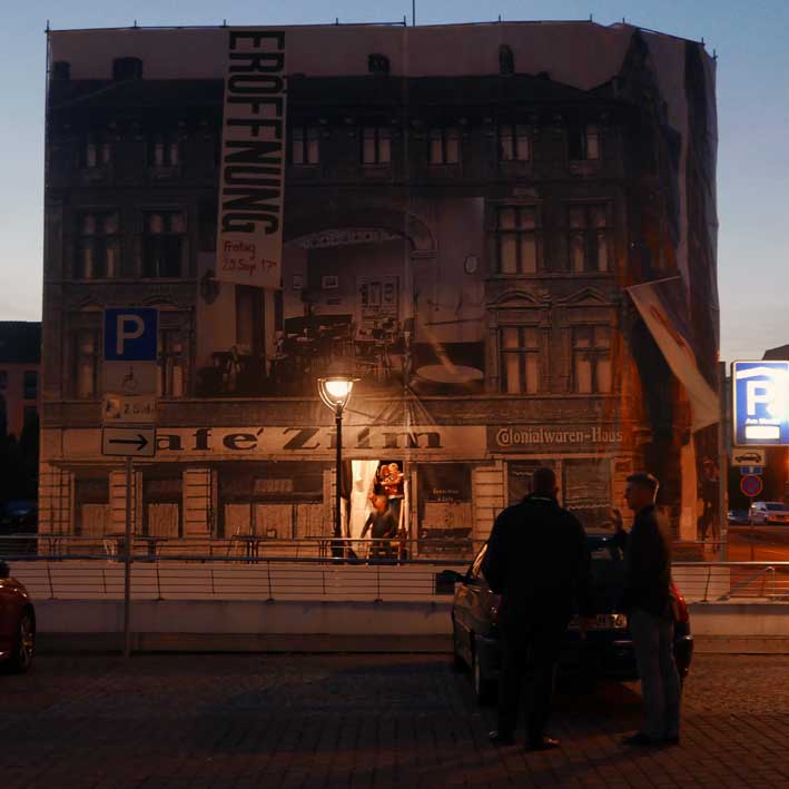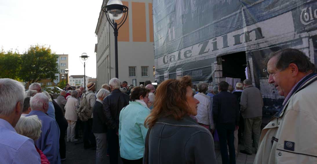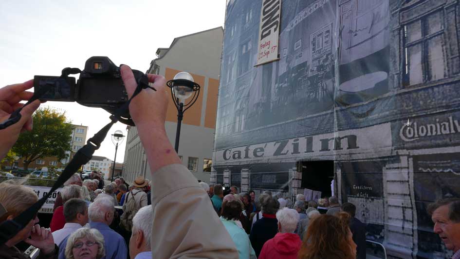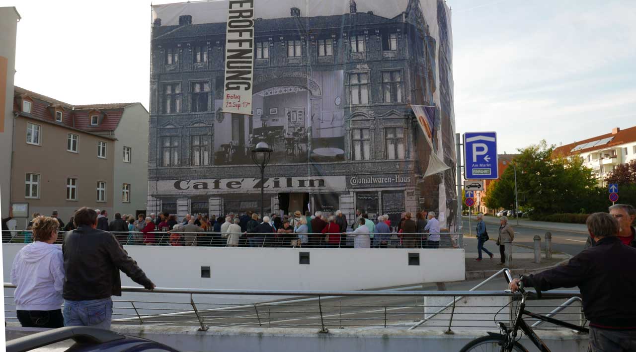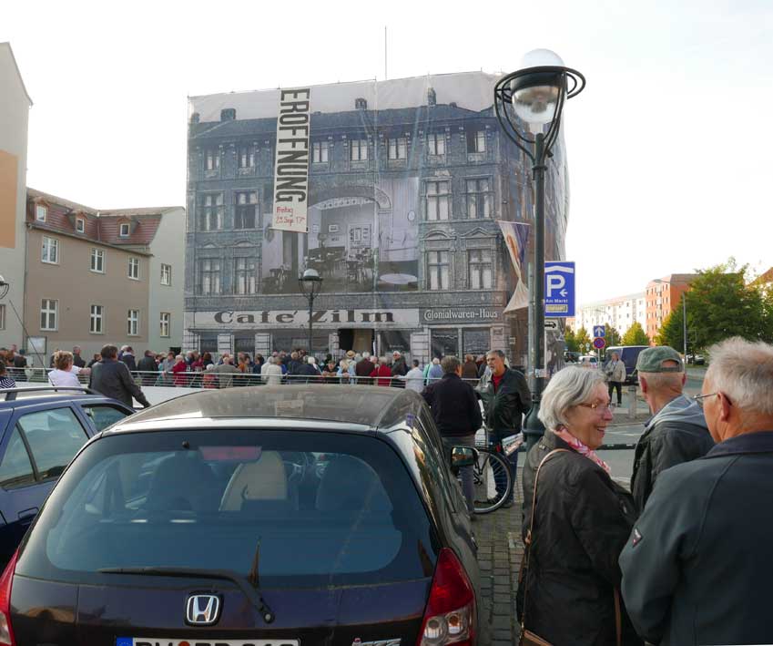 Auch die Freunde sind da aus Schmarsow dem nun wieder histoischen Haus in neuen Gewand und die Freunde aus Berlion und die die da mitmachten in vieler Art hier, dass es so leben kann nochmal für 2 Wochen alle nebeneiander, alle zusammen in dieser Stadt wieder, in einem Cafe, wo das alte Cafe Zilm mal war.