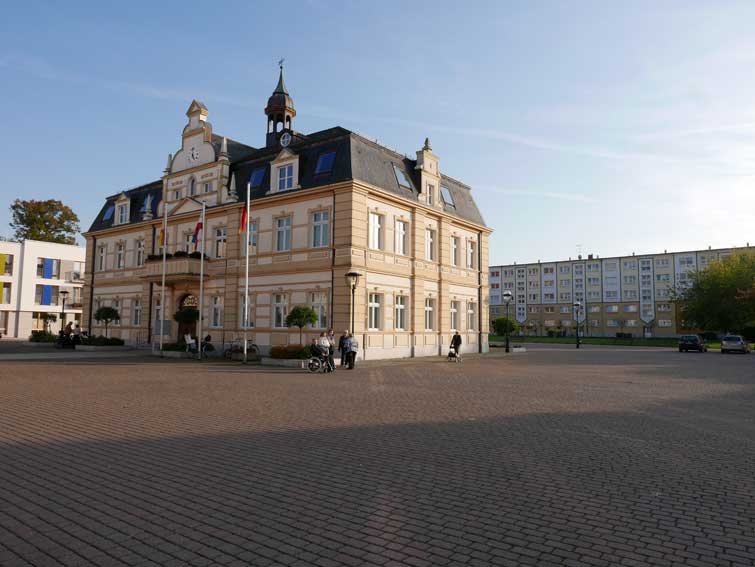 An diesem Abend wird das Rathaus in Demmin einsam daliegen