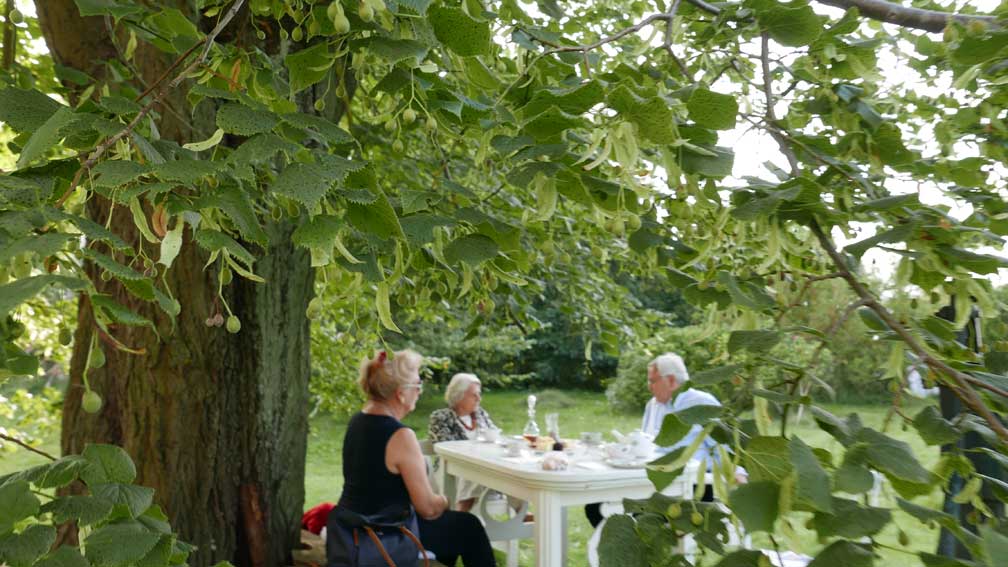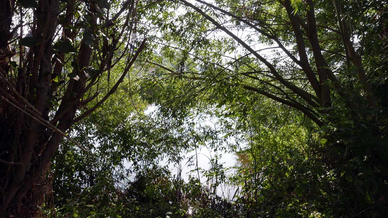 tief liegen die Schatten schon und frisch glitzert das Wasser durch die kühlenden Zweige über denTeich