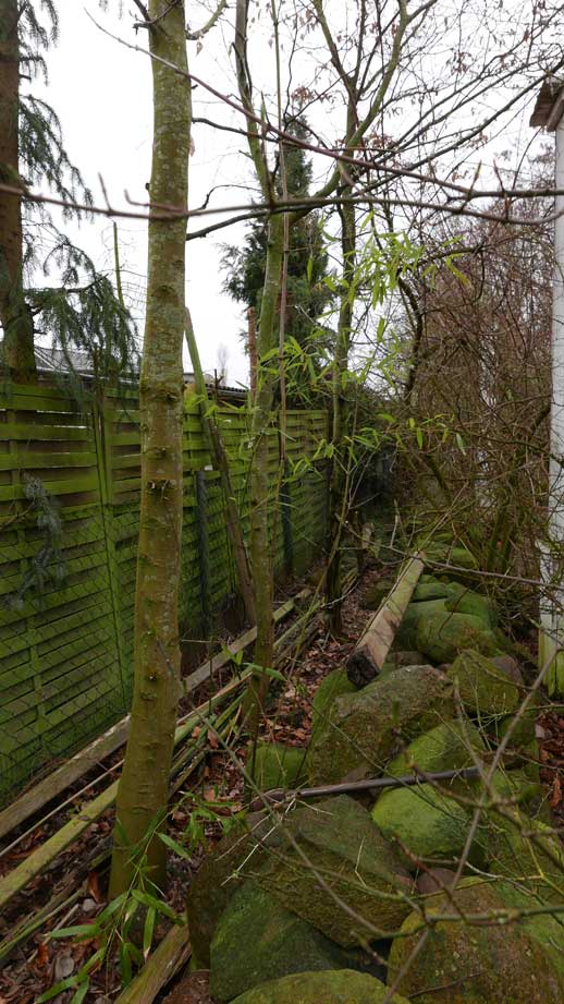 Und dann ist es doch wieder passiert. Die Juristen nennen das Landsfriedensbruch, Sachbeschädigung, Braumfrevel. Die Situation ist klar. Nach Lichtung der Hecken und Enternung alter Matten zum Sichtschutz wird es deutlich. Die vom Gericht als Erlaubte Bepflanzung der Seiten grenze mit Hainbuchen wurden diese, indem er den nachbarlichen Grund in heimtückischer Absicht betrat bis zum Totalverlust beschädigt, die Ast-Reste liegengelassen un d solcher auf seiner Seite über die Grenze geschmissen.