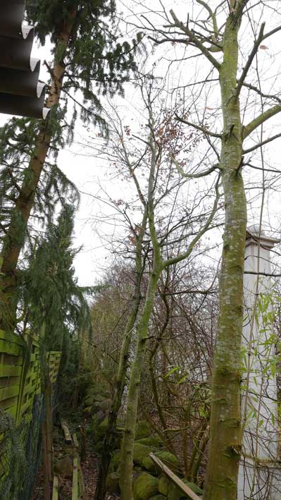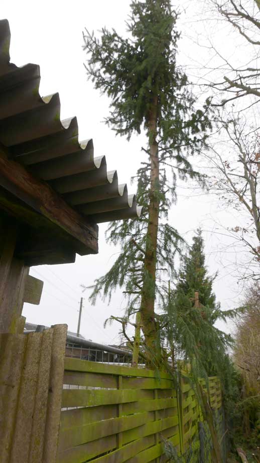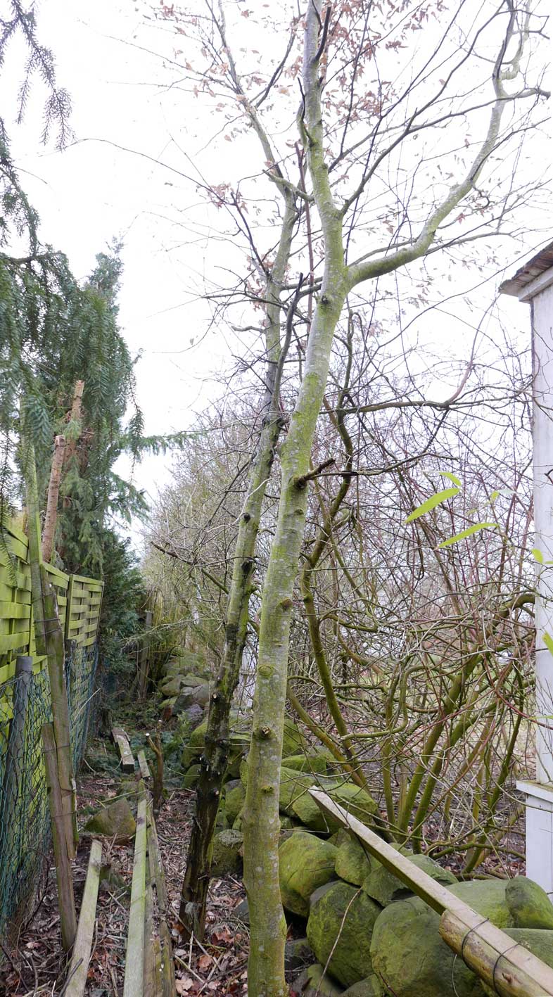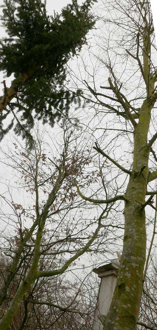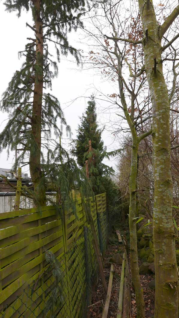 Die grausame Beschneidung der Bäume durch Rasur hinauf geschah auch auf der anderen Seite. Durch Abwurf der Zweige auf unsere Nachbarseite.