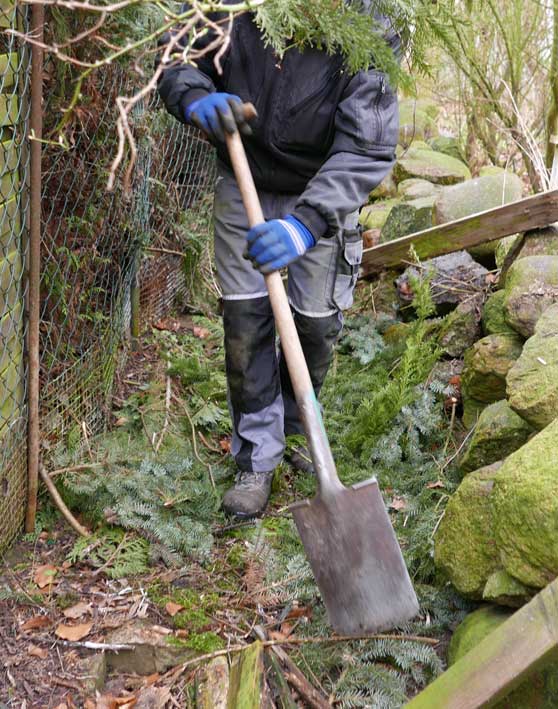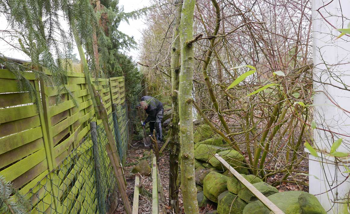 Der Grenzverlauf ist amtlich. Nachdem der Nachbar Sch. seinen Zaun auf die Grenze setzte, pflanzten wir auf die eigene Seite begrenzende Hainbuchen und setzen eine Mauer auf eigener Seite und davor eine Hecke. Damit die Unzumutbarkeiten der anderen Seite zumindest optisch abgewehrt waren. Das wurde nach lästigen Prozessen geklärt. Das Haus, der Blick aus den Fenstern, die Benutzung des langsam wieder entstandenen Parks war wieder gesichert.