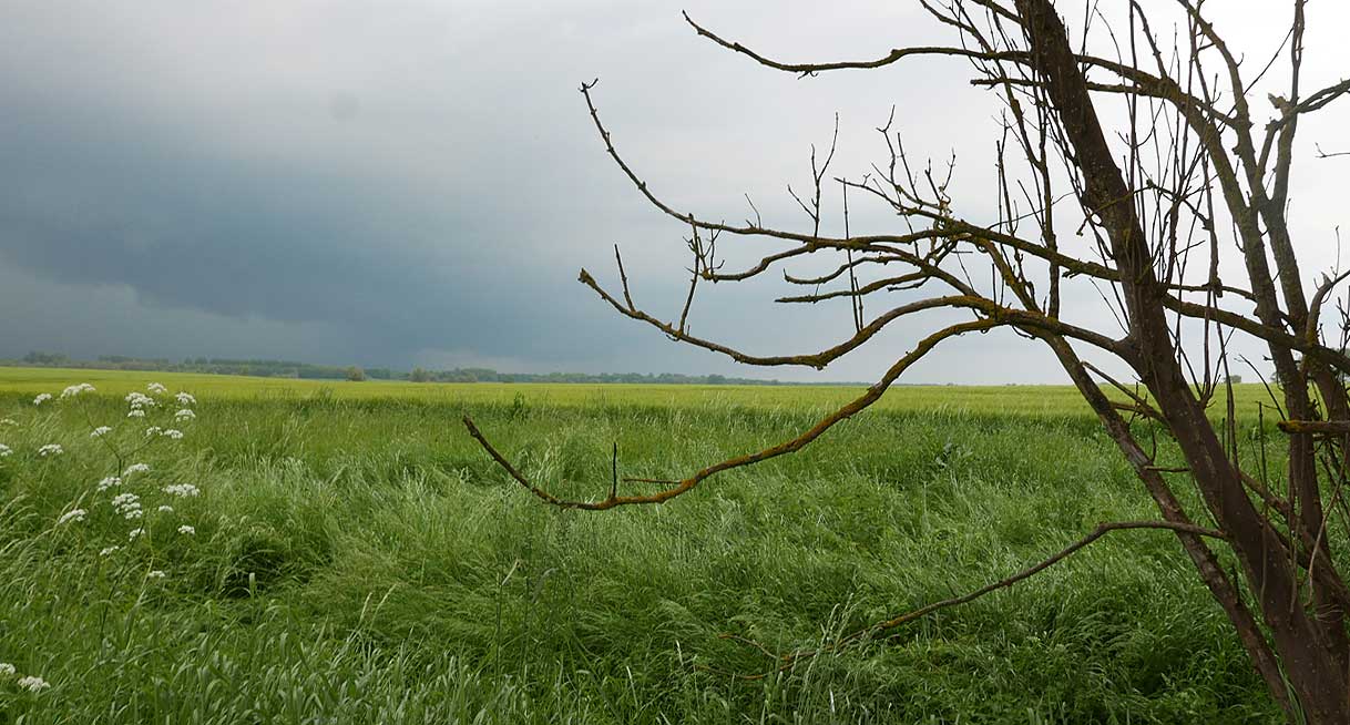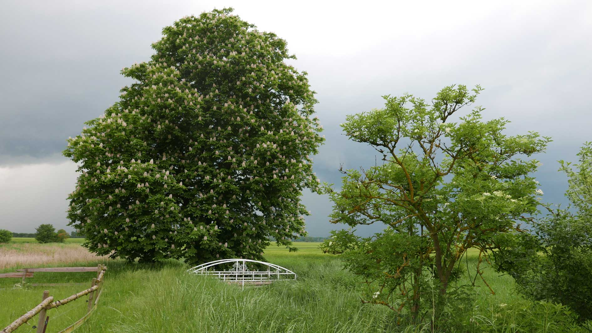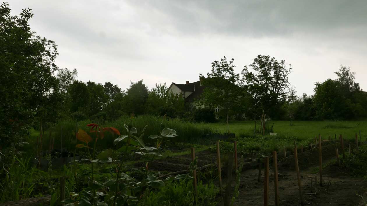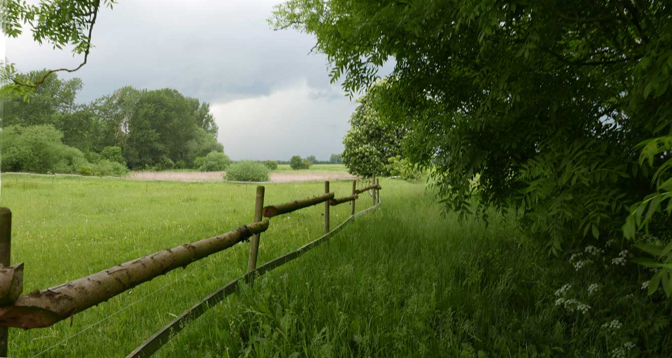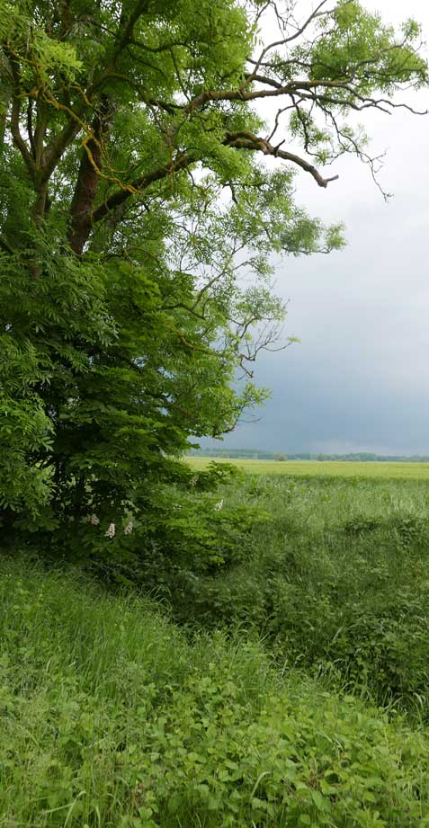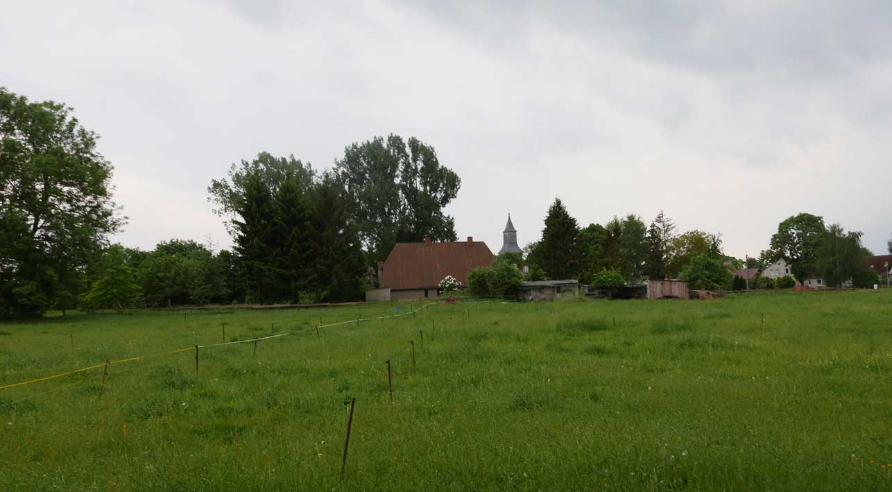 der Graben wieder nach dem LPG-Rohr leer von Wasser und zugewachsen