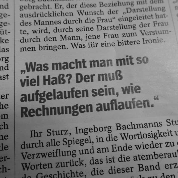 angesichts der Verbrechen schon an Natur und Geschichteeben bis heute. Und wenn nicht die Danksagungen und Lobgesänge auch wäre aus denen, der anderen - gings wohl auch nicht. Wärs wohl nicht gegangen. Aber nun, Ohne diese? oder nur anderer Art? und wir erkennens, wissens nur nicht.