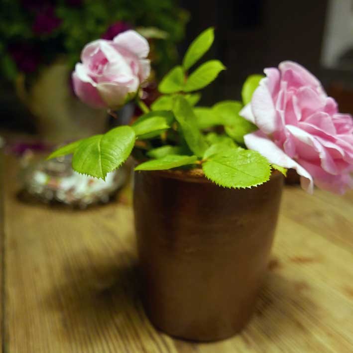 so war auch dieser einfache alte Topf dabei die jetzigen Rosen wieder zu fassen.