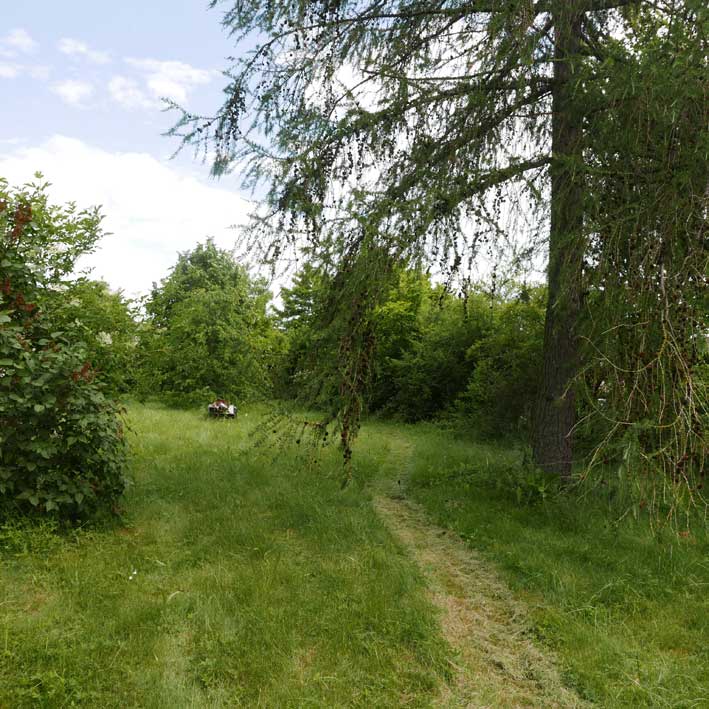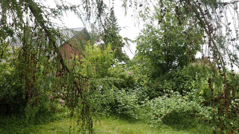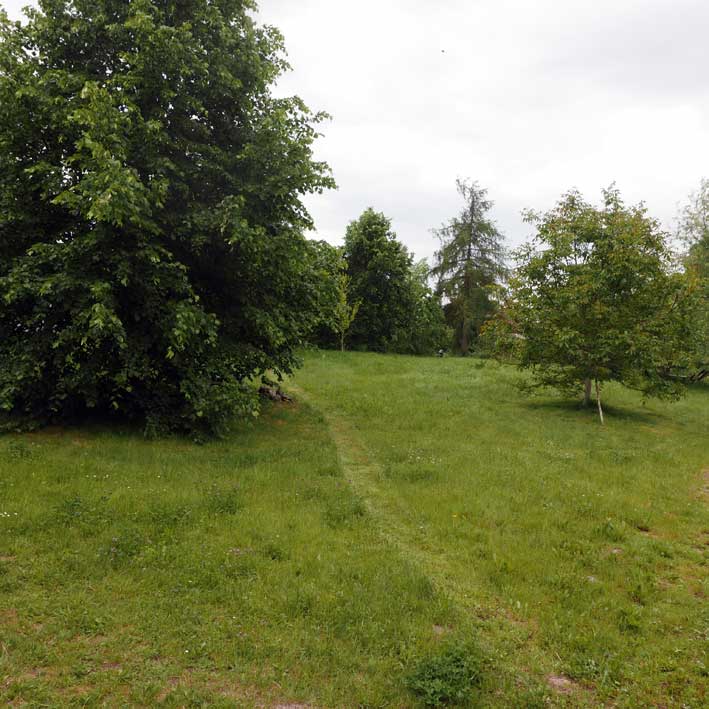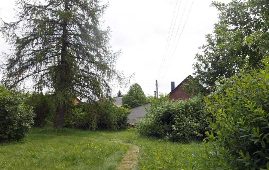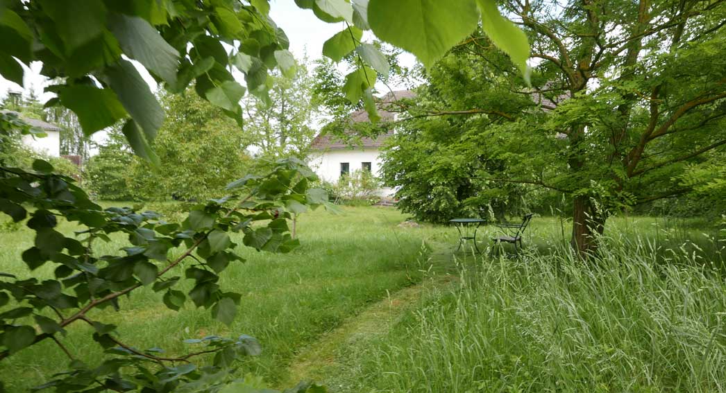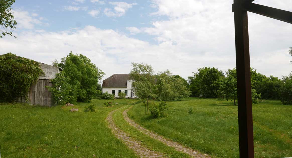 vorbei dort, wo drüher der Kuhstall war und das Heu hochgeladen wurde