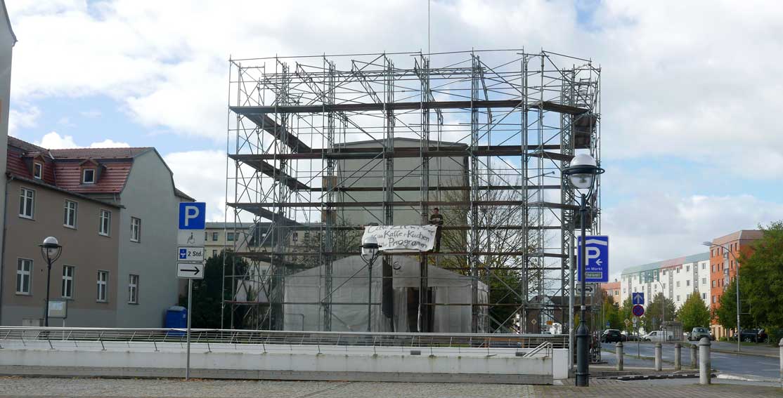 Das kleine Zimmer aber als Haus im Gerüst, dem durchscheinenden, was für ein Glück eines Architekt, hörten wir auch heute am nachmittags des Kaffees, auch in Demmin.