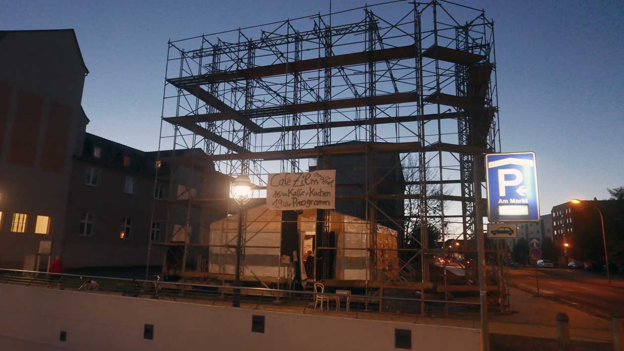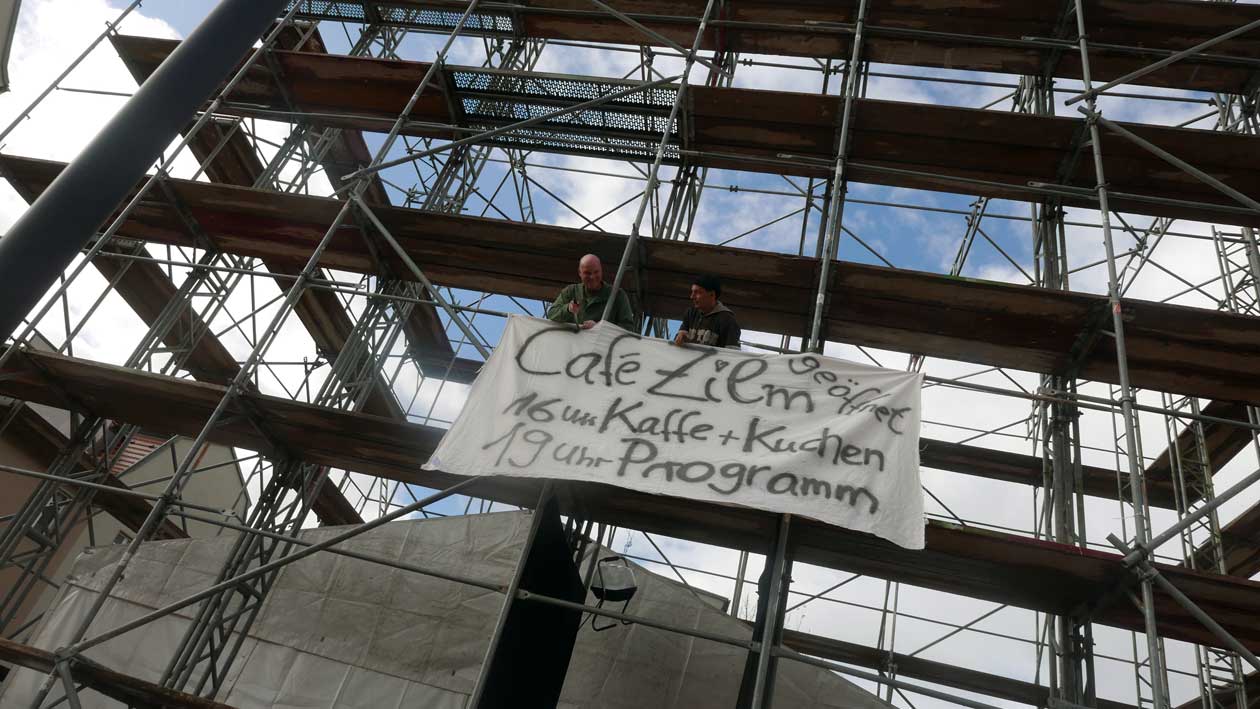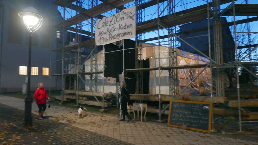 erster Abend im reduzierten Cafe Zilm ohne Fassade auf den Kern gebracht des inneren Gedankens