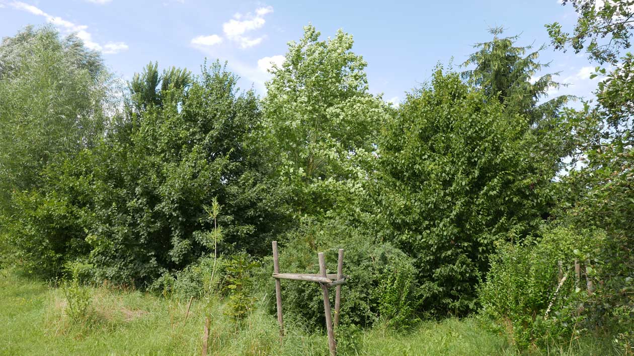 Es sind diese Bäume und Sträucher, wie sie hier in der Folge dokumentiert werden, ein Park, der verschwinden soll, um ein in und für die aufgelöste LPG entstandenes Rohr anstelle eines eiszeitlichen Grabens zu erhalten. Alle Bemühung den alten Graben und nun auf unserem Grund um die neu entstanden Gärten der Garagen nicht zu behindern, wieder zu öffen, wurden abgelehnt.