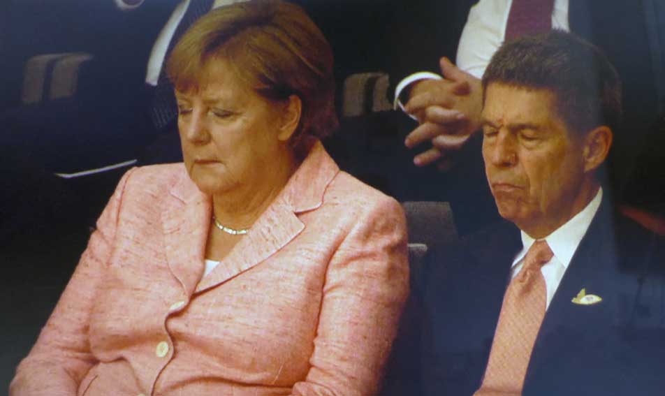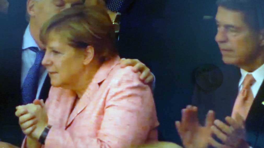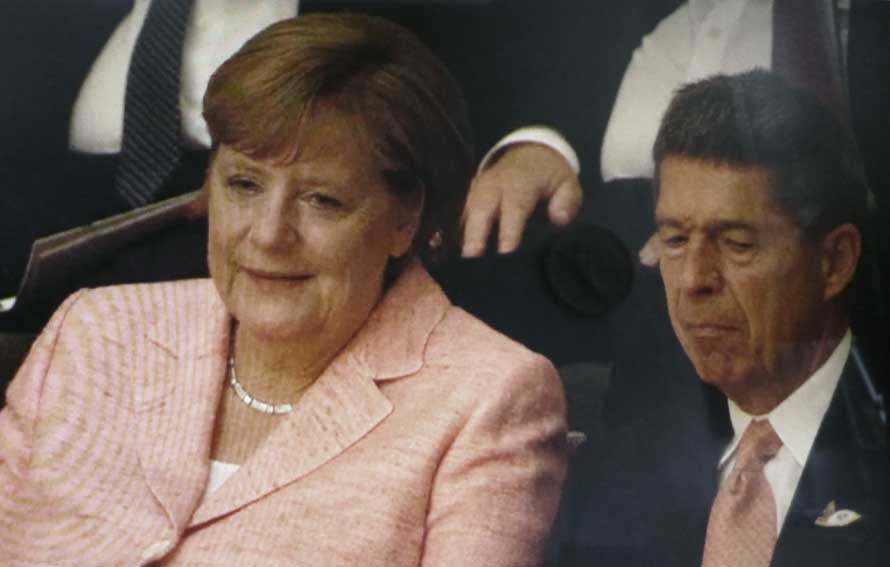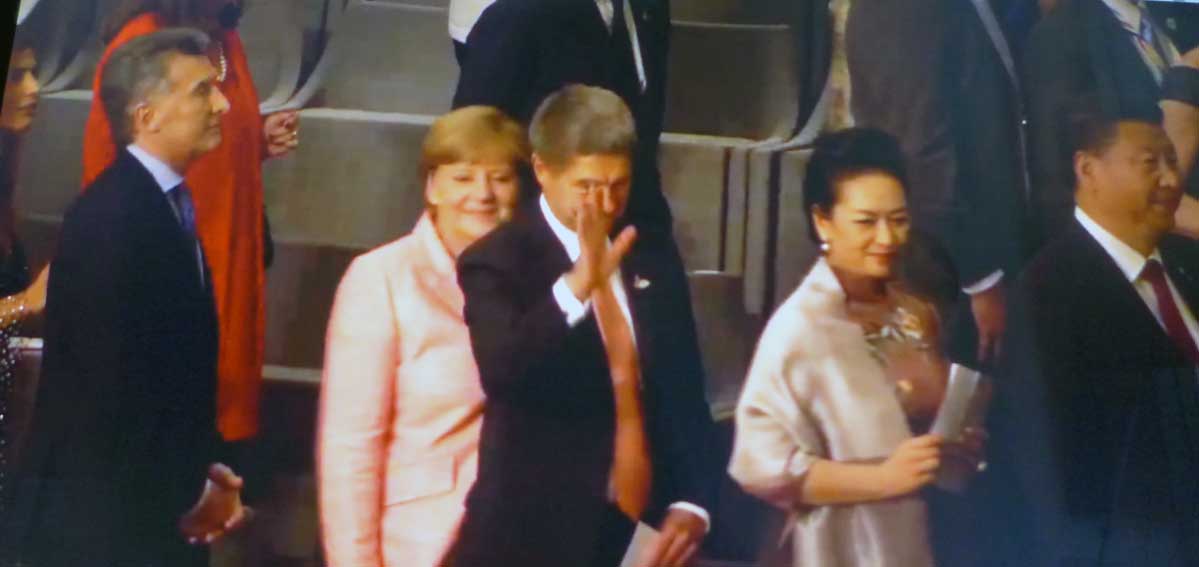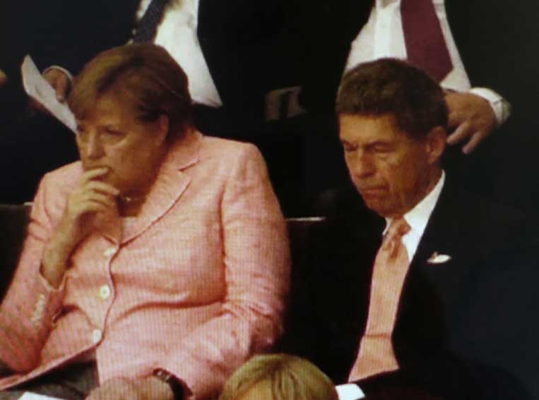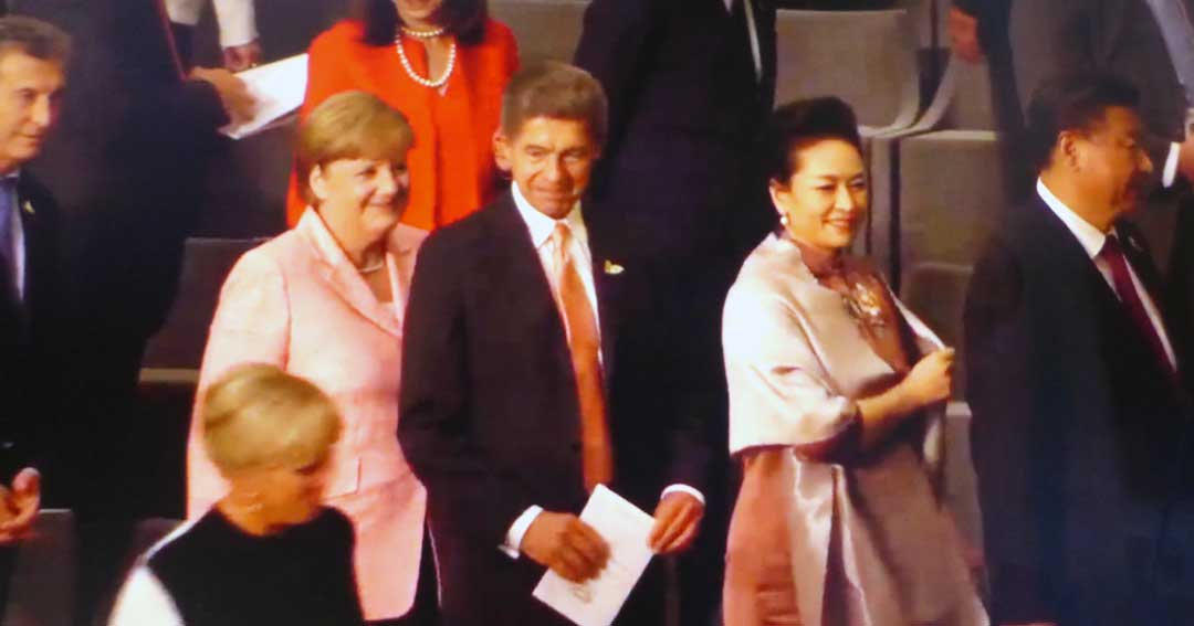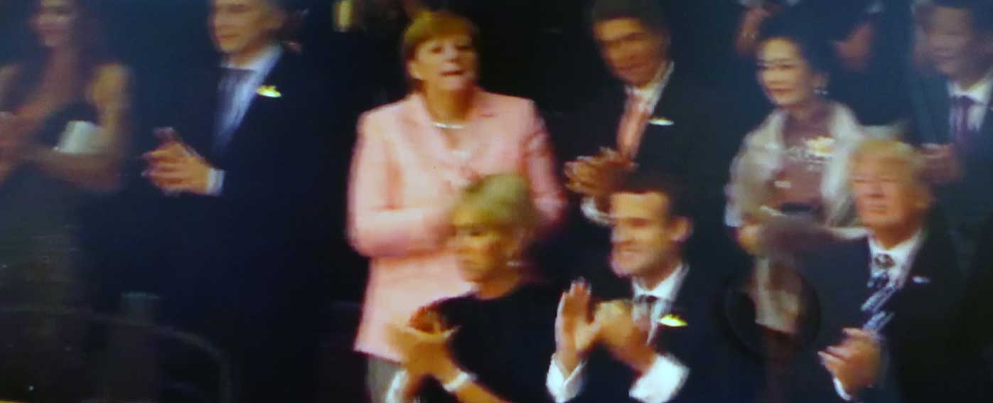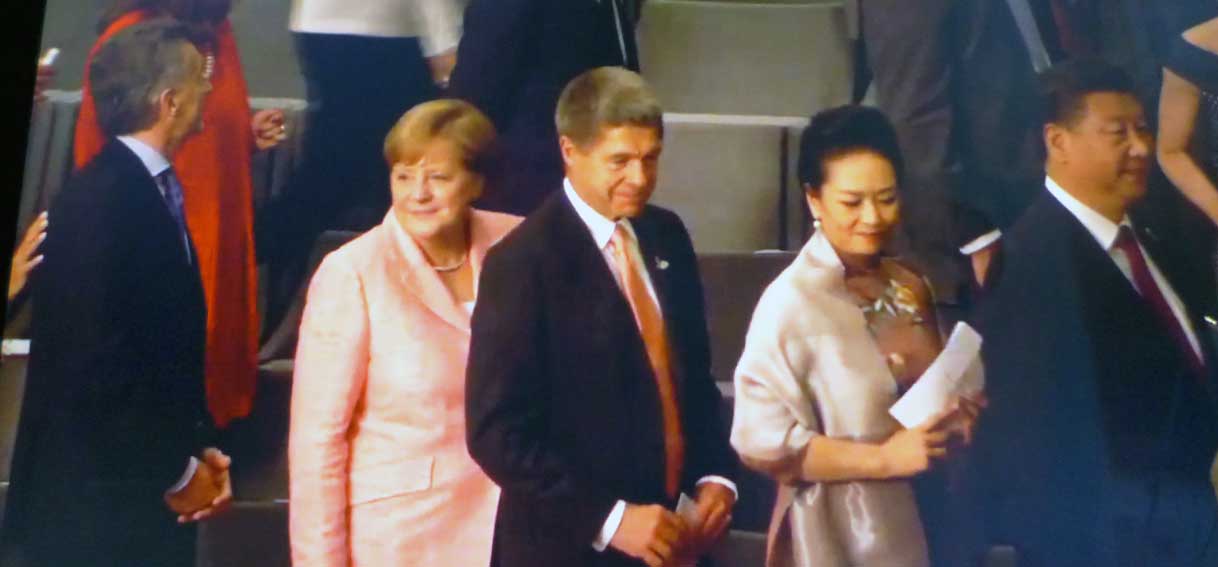 Ein kleiner Jubelsturm setzte ein, als Bundeskanzlerin Angela Merkel (CDU) an der Seite ihres Mannes, Professor Joachim Sauer, den Saal betrat.