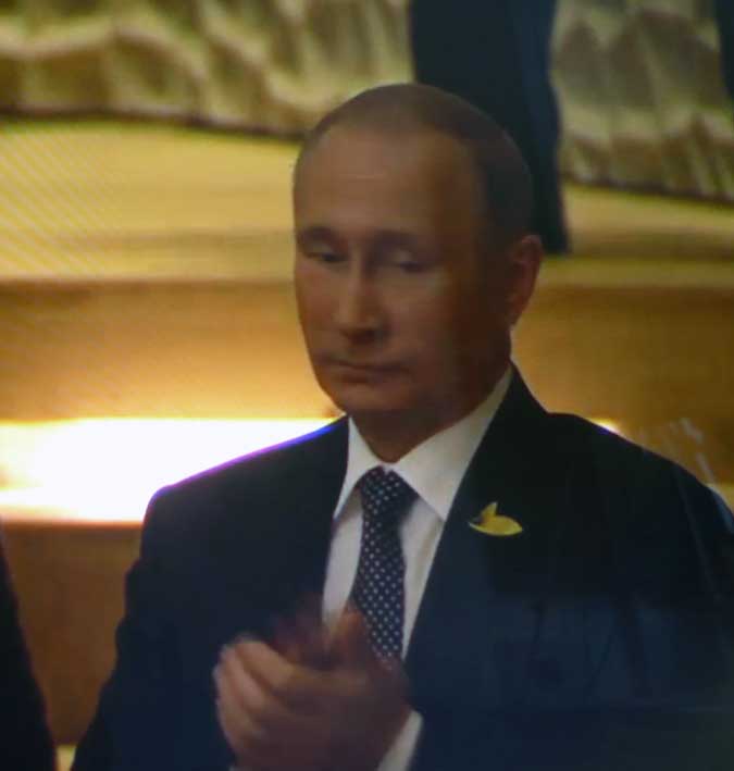 Der russische Präsident Wladimir Putin kam gut zehn Minuten nach Konzertbeginn in den Großen Saal der Elbphilharmonie und war damit um Viertel vor Acht der einzige Gast, für den die Konzerttüren noch einmal von außen geöffnet wurden.