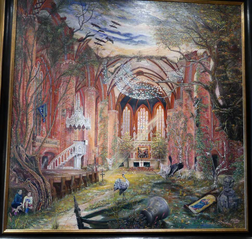 ja wir sehen richtig die Demminer Bartholomäus Kirche als Ruine - 45 davon gekommen noch mal mitten im Feuer- durchwachsen vom neuen Leben..