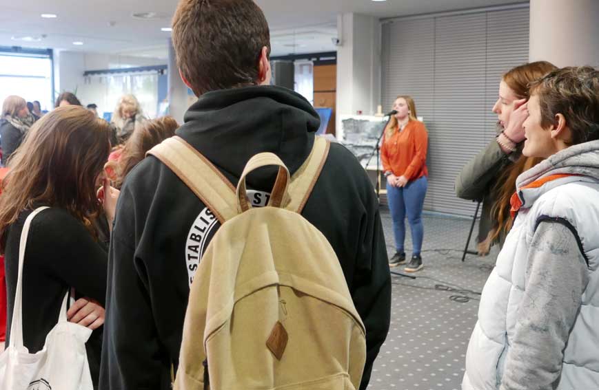 eigentlich eingeladen Frau Holznagel zu hören, Posaune in der Volksbank aus Anlass der Kunst Nacht in Demmin.