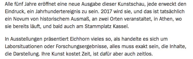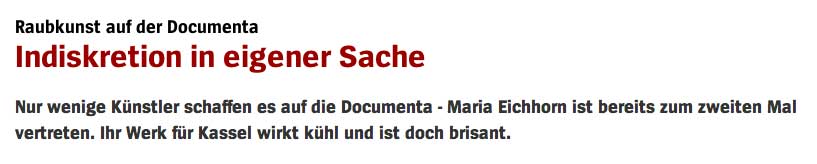 wir selbst 2x auf der documenta - aber ohne Raubkunst, sondern mit Eigenem. Und wenn es die Höhle der Erinnerungen war. Mit engl Titel Cave of Memory, um den eigenen Leuten zu entgehen. Damit es keine Hölle der E. werde.