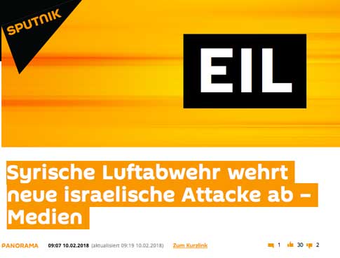 Die syrische Luftabwehr hat laut der staatlichen Nachrichtenagentur SANA einige israelische Jets angeschossen, die Militprobjekte der syrischen Armee im Zentrum des Landes angegriffen haben
