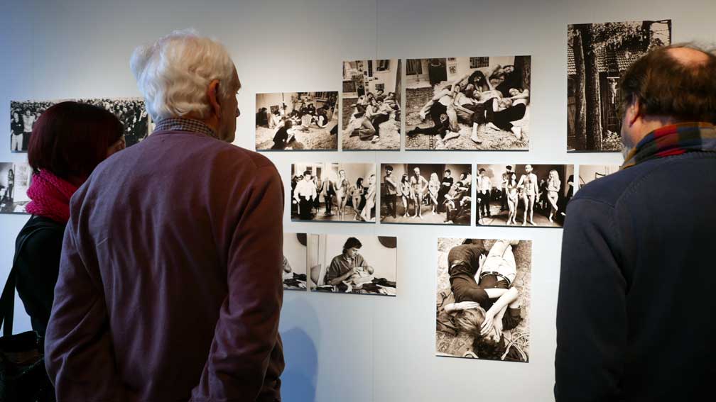 hatte sich Hundertwasser ausgezogen unter den Gästen der Vernisage, weil er sich mit den Modellen gleich machen wollte
