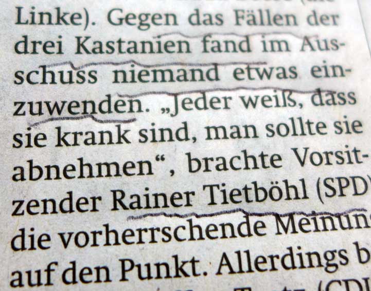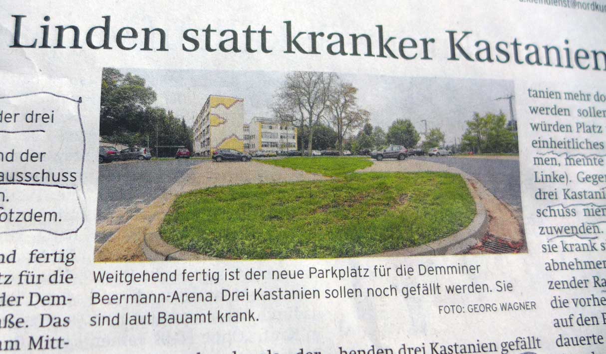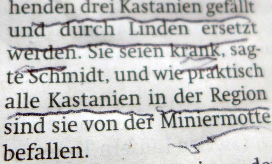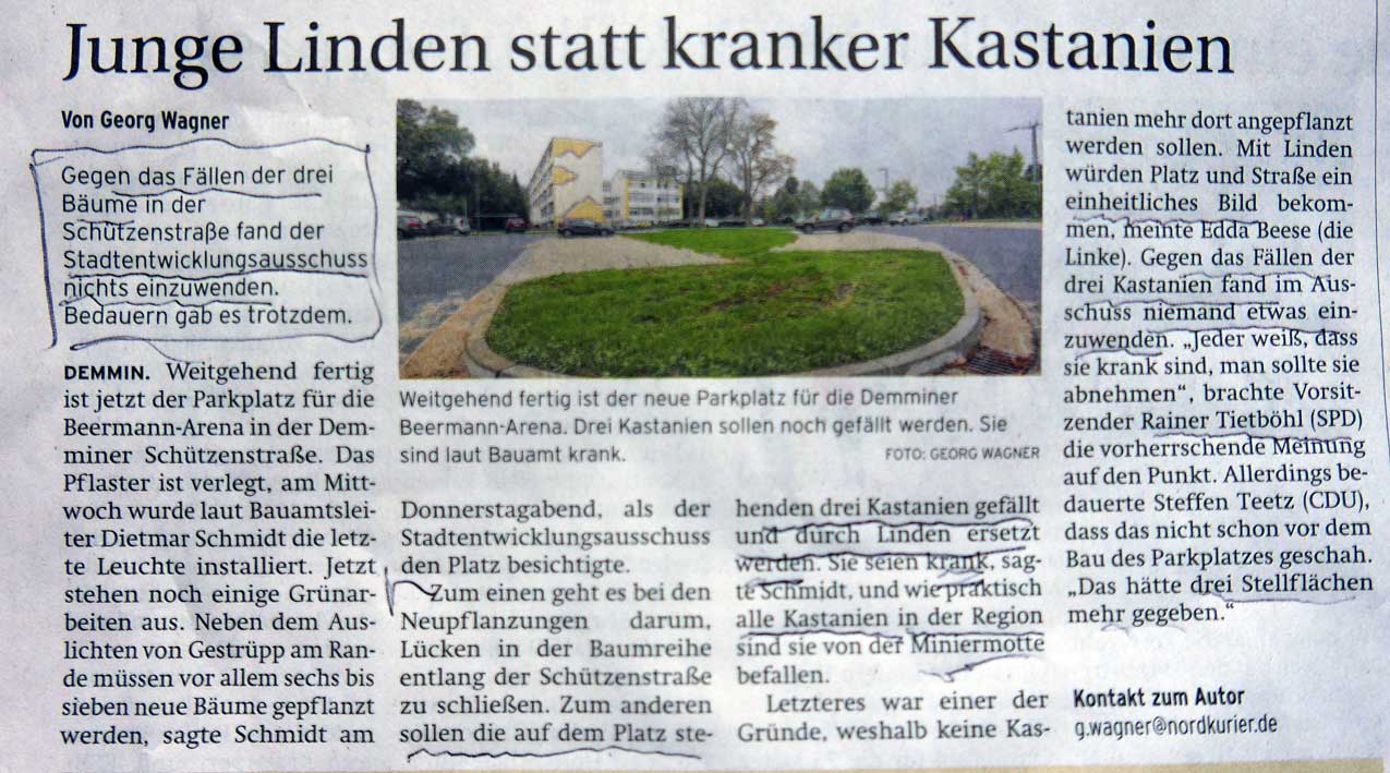 Haushohe Kastanien geopfert. Was man gegen die Minimiermotte macht, steht im selben Nordkurier als Ratschlag. Dem Umweltamt wohl unbekannt. Alle Kastanien weg !