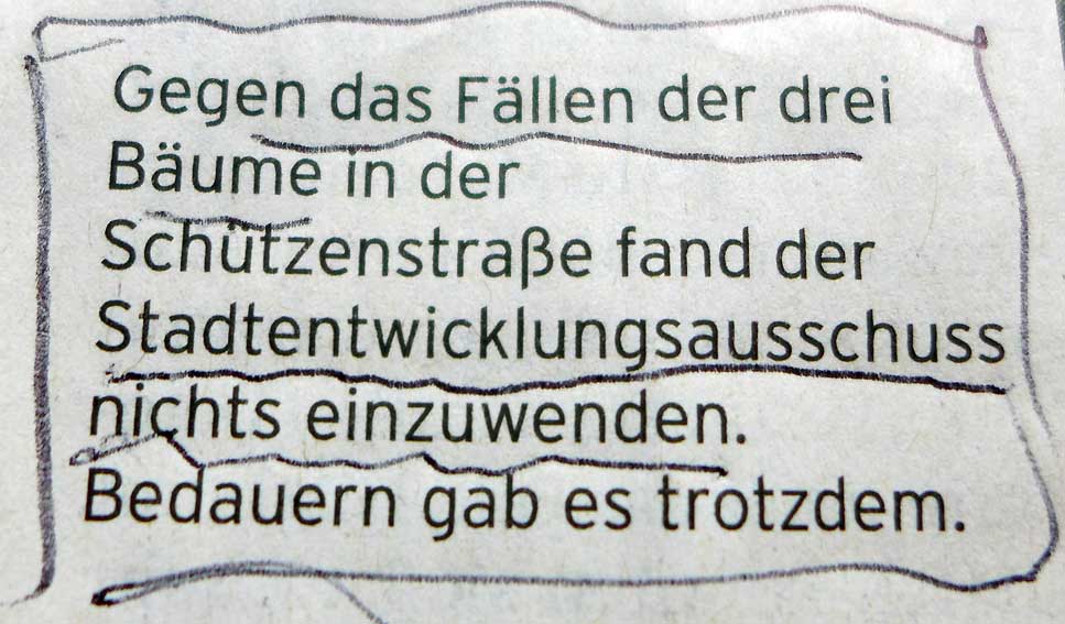 Was dann kommt wissen wir BZO>Europäische Bauzucht Ordnung als Plicht aller Baumschulen von unten herauf geschnitten alle Allee-Bäume 2,50/3,50 kein Ast, auch in Parks. Einheitlich. Unsere Kinder werden natürlich gewachsene Vielfalt nicht mehr kennen. Und Sorge ist durch Ent-Sorgen ersetzt.
