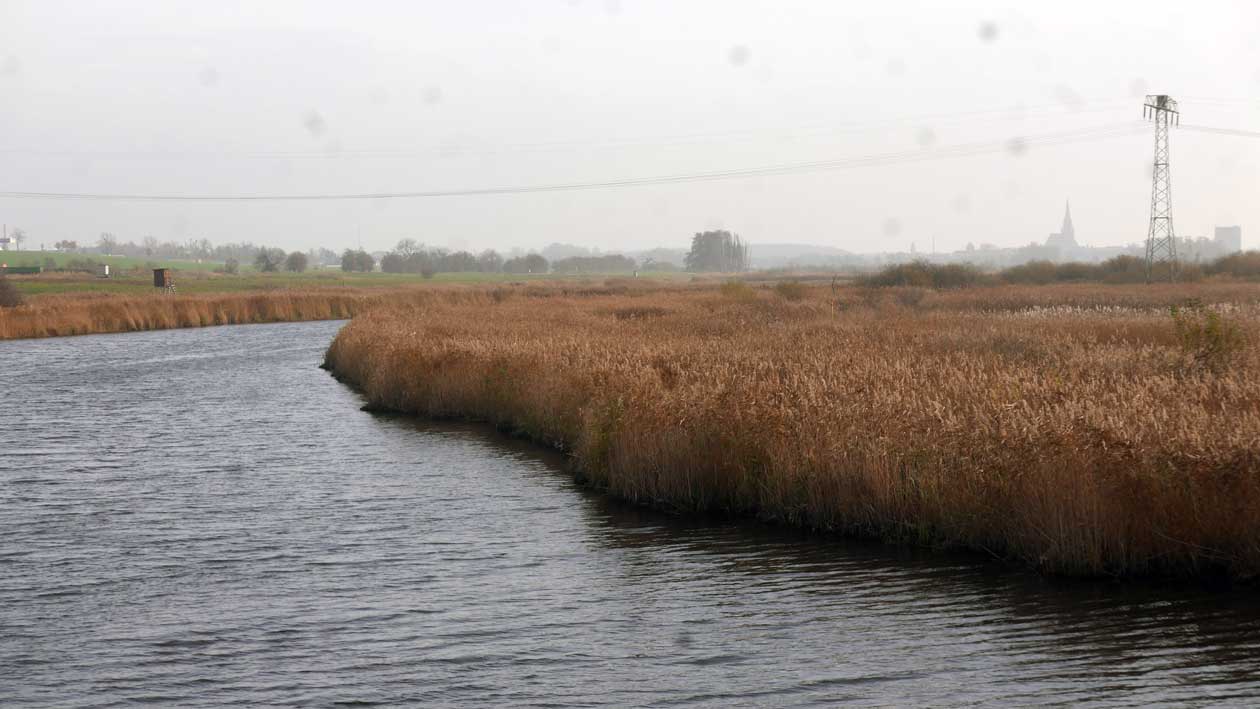wo früher die im Herbst und Frühjahr durchziehenden Vögel ihre Rastplätze hatten vertrochnet und gemieden kommen jetzt die Manager des vergifteten Flusses mit Stahl, Schotter und Beton.