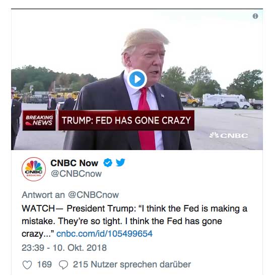 Der sich fortsetzende Handelsstreit zwischen den USA und China und die Furcht vor weiter steigenden Zinsen am US-Anleihemarkt setzten den Kursen erneut zu und verstŠrkten damit die seit einigen Tagen zu beobachtende AbwŠrtsdynamik