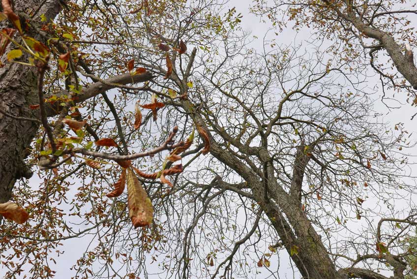 auch diese Edekastanie war vor kurzem noch eine Ruine. Die Wühlmauss kostete einen Grossteil der Blätter und Äste.