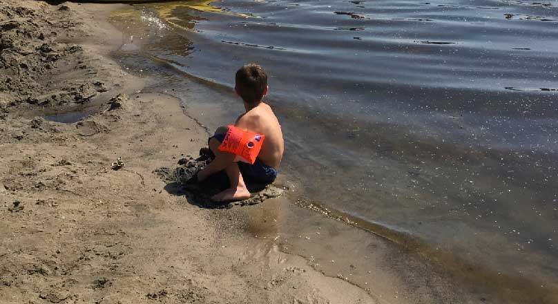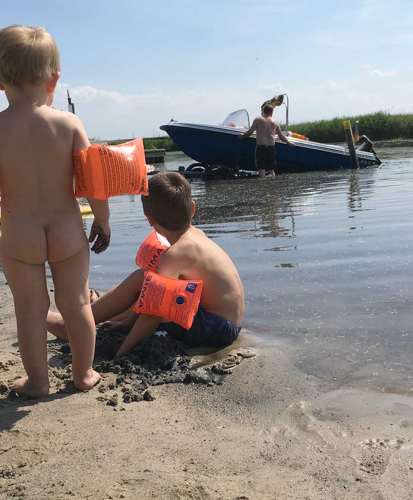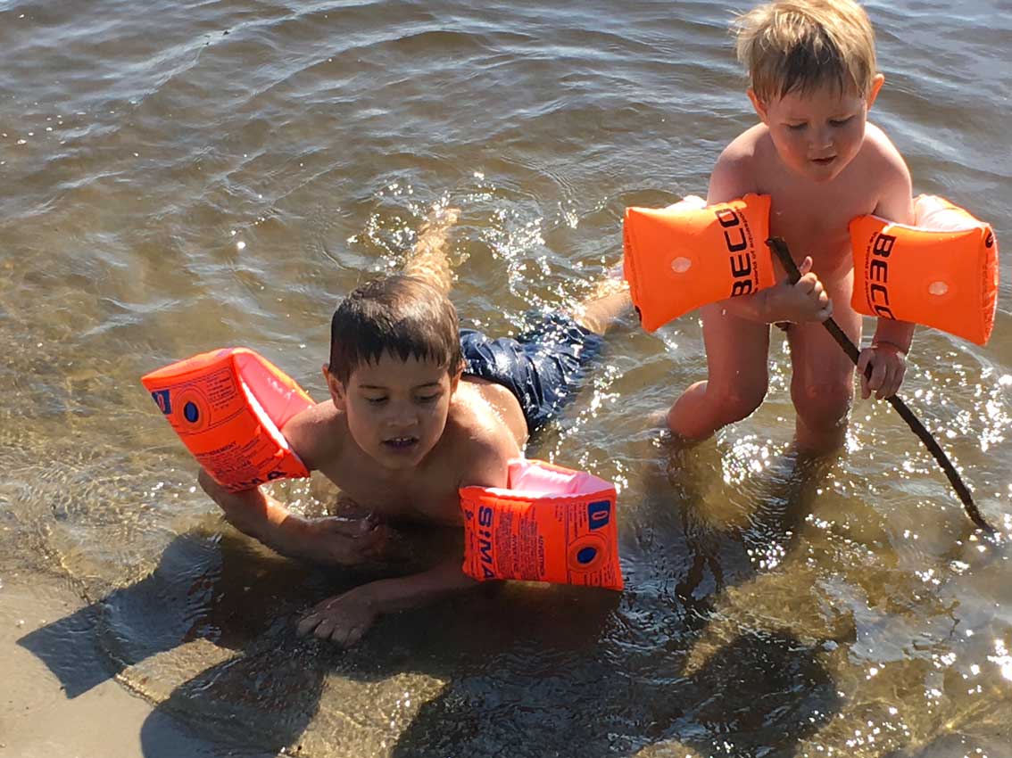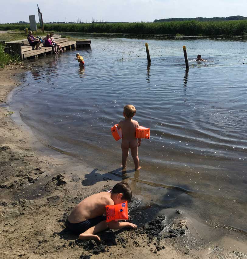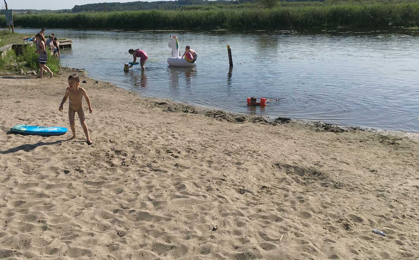 das Baden der Kinder leider nicht i Nossendorf, dem verhärteten und öden Ufer der Trebel, aber in der Trebel in Nehrungen doch