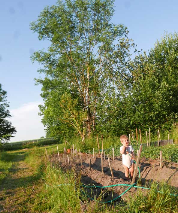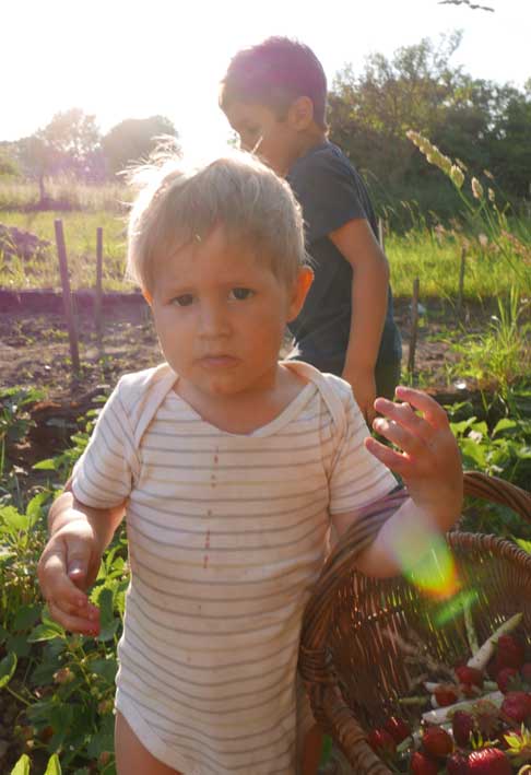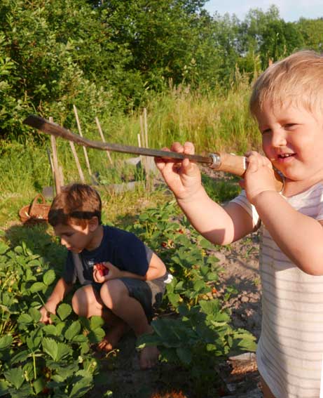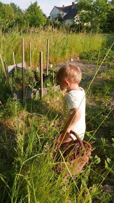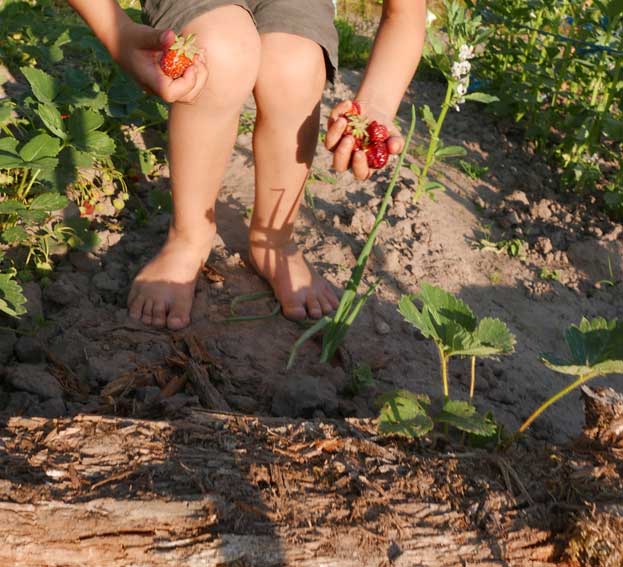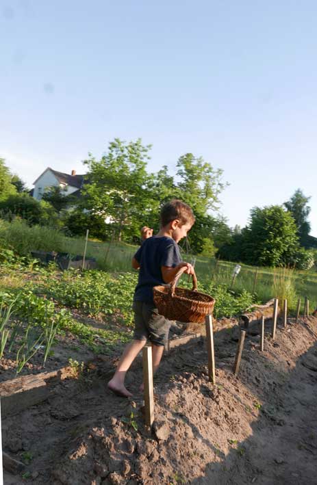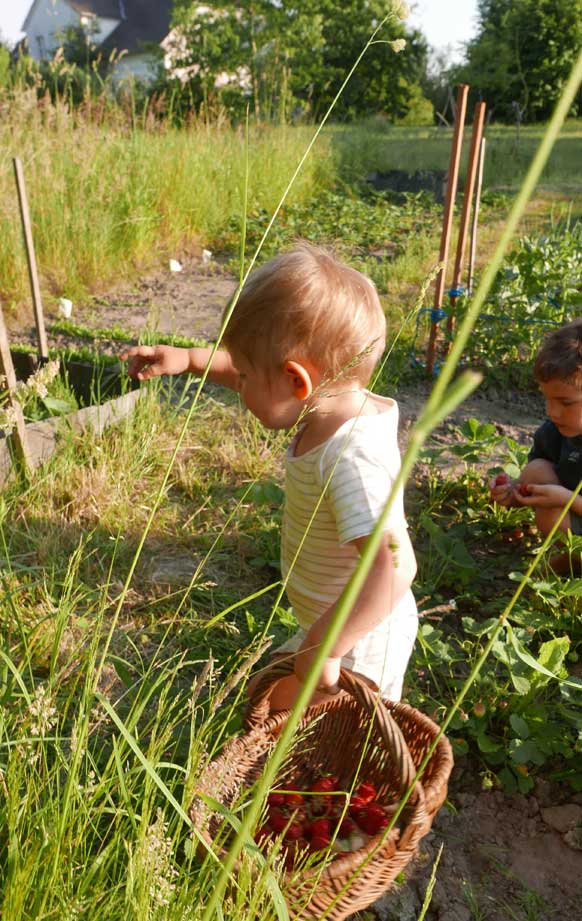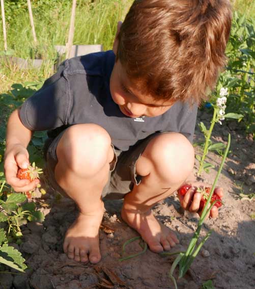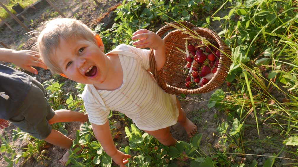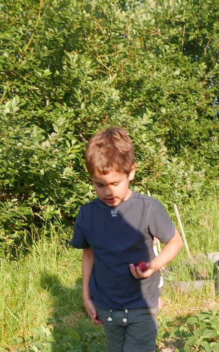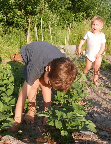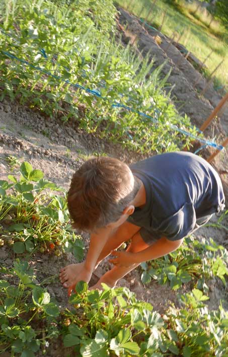 Im Gartren, as Stechen des Spargels zusammen in Bildernversäumt, aber Erdbeern und kirschen bringen auch reiche Ernte