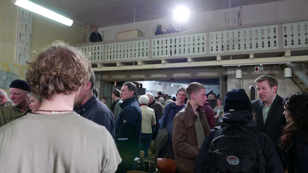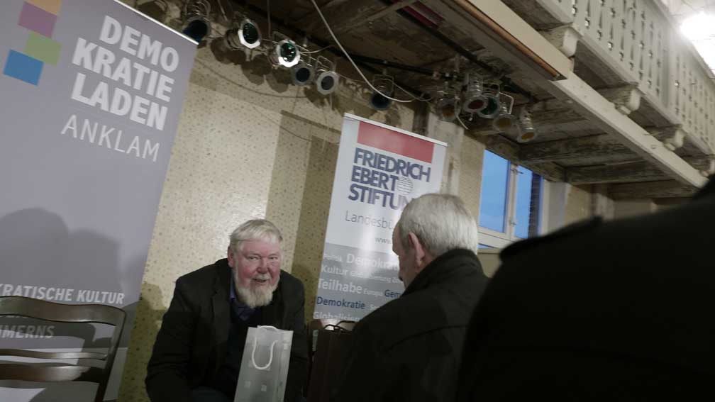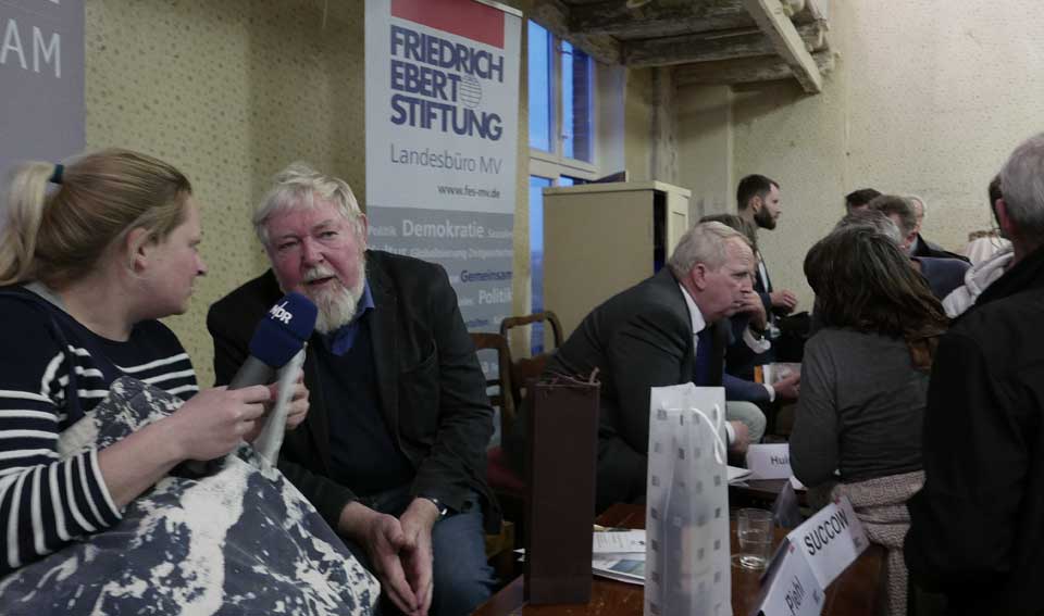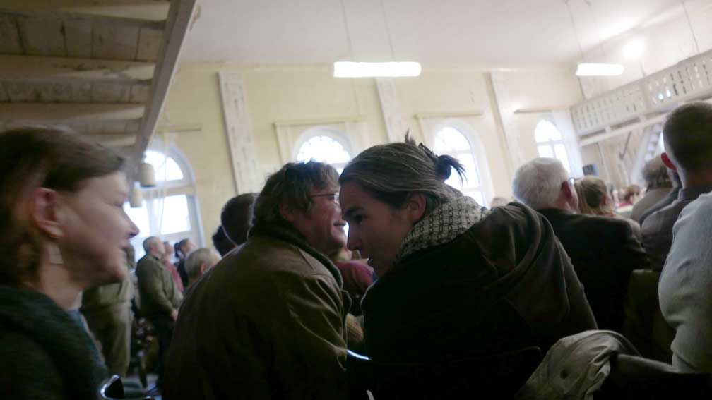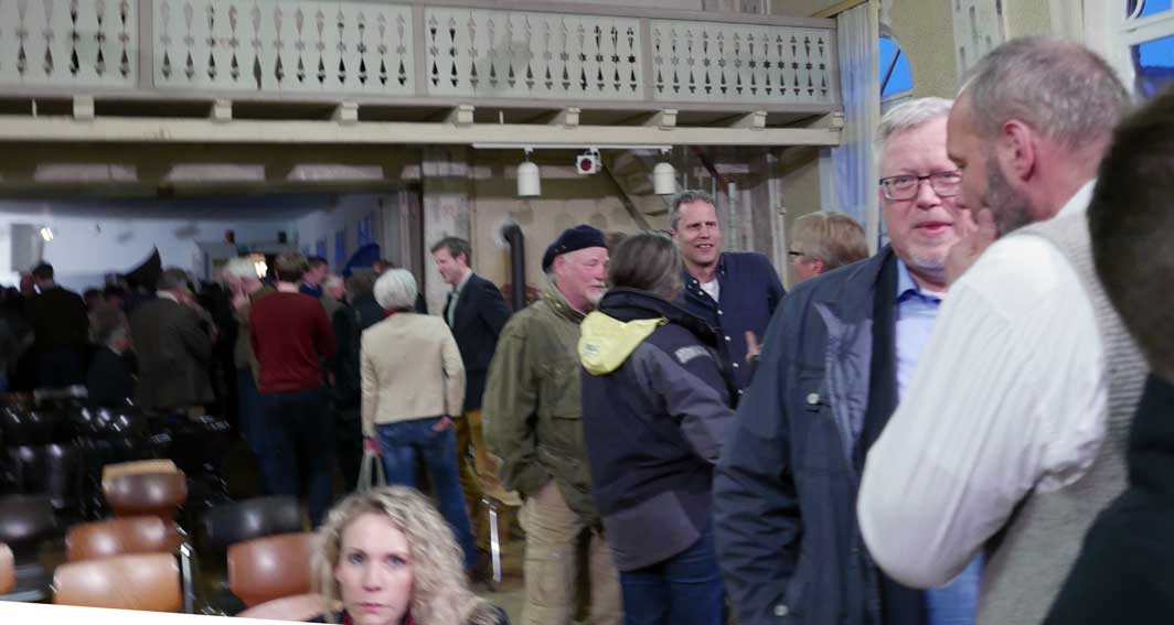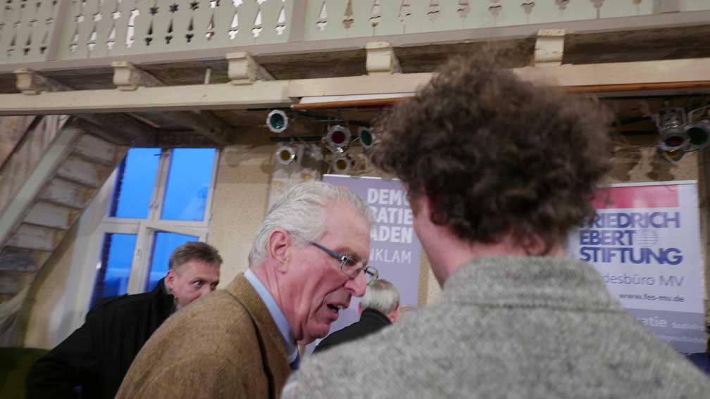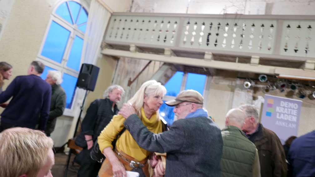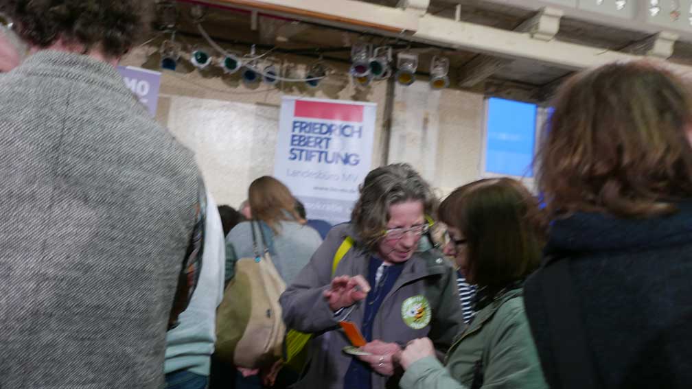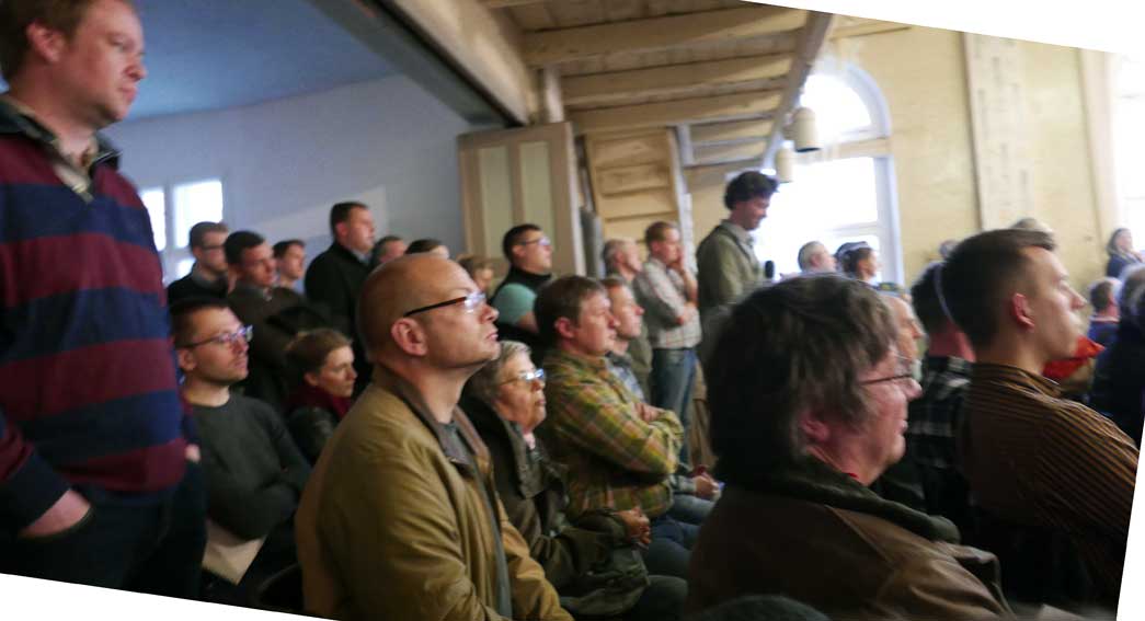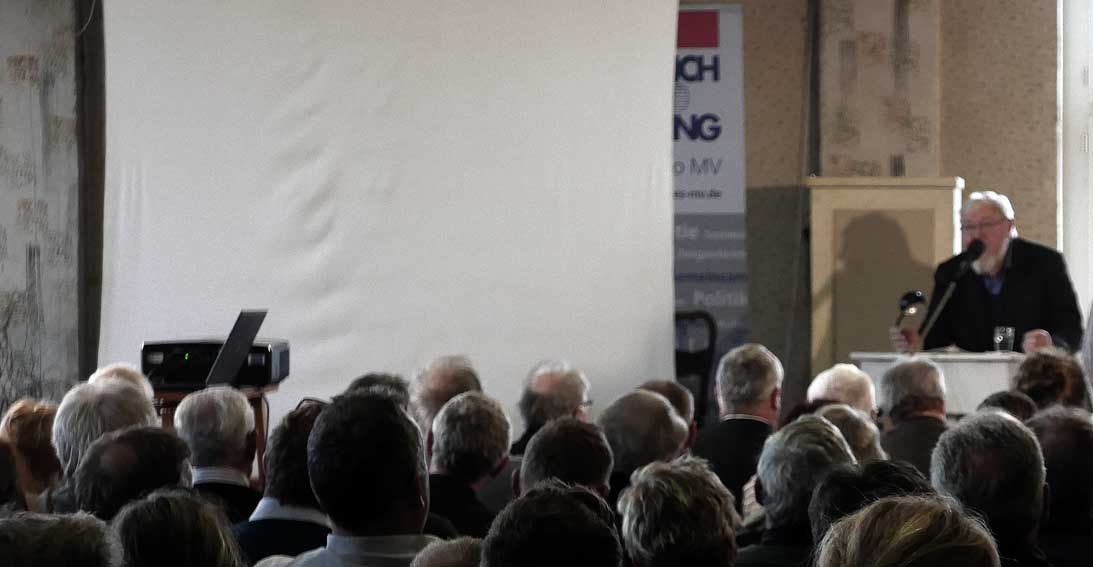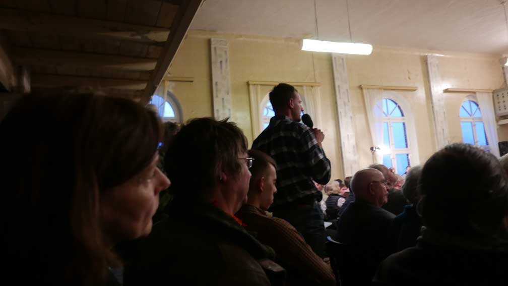 Versammlung zum Thema aktuelle LandWirtschaft,Umwandlung zu Bio, in Loitz, der Stadt an der Peene bei Demmin. Bei Tucholsky dem richtigen Haus. dafür.