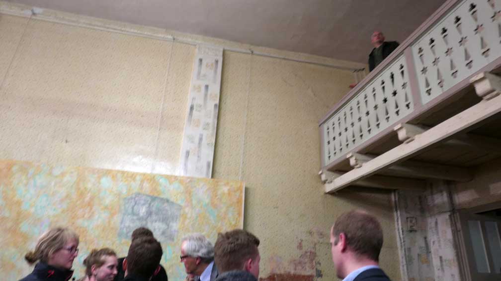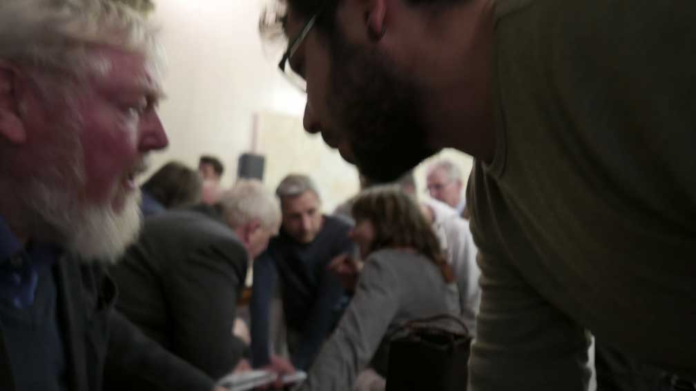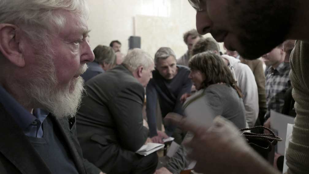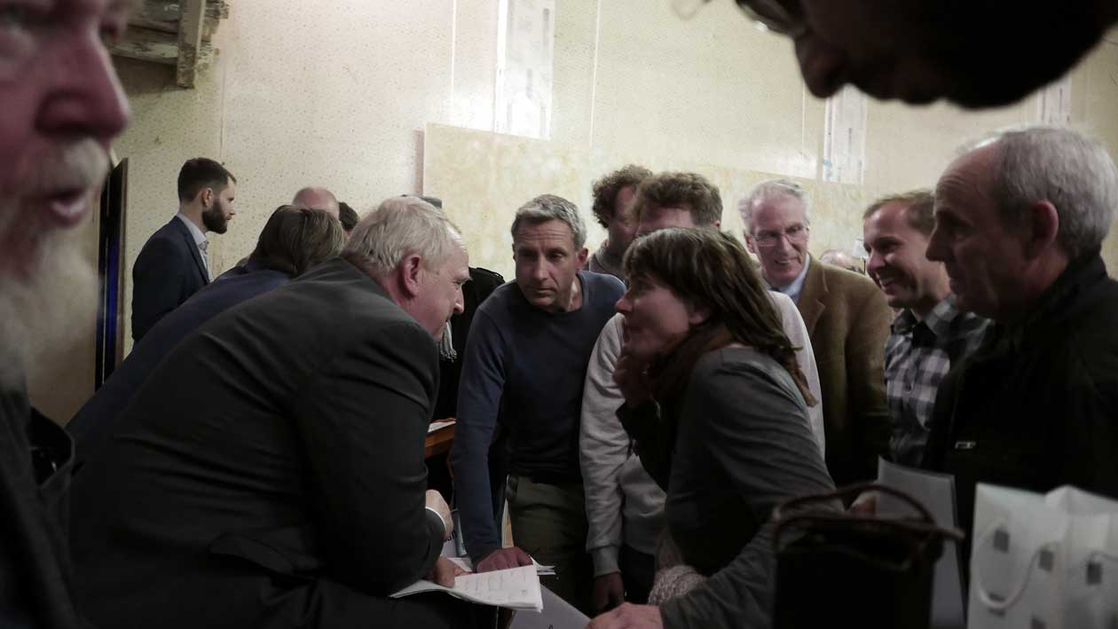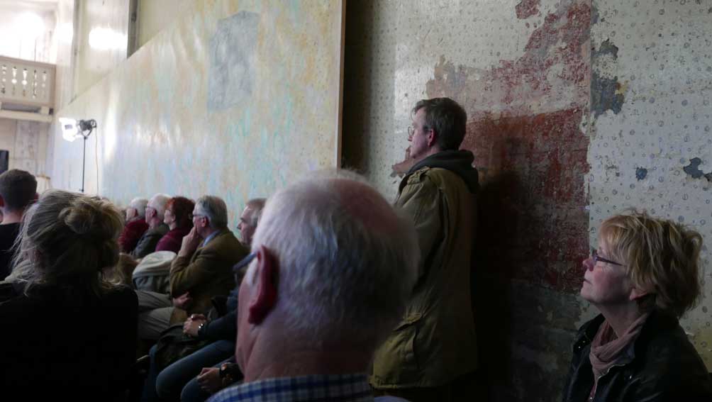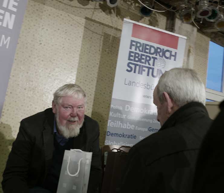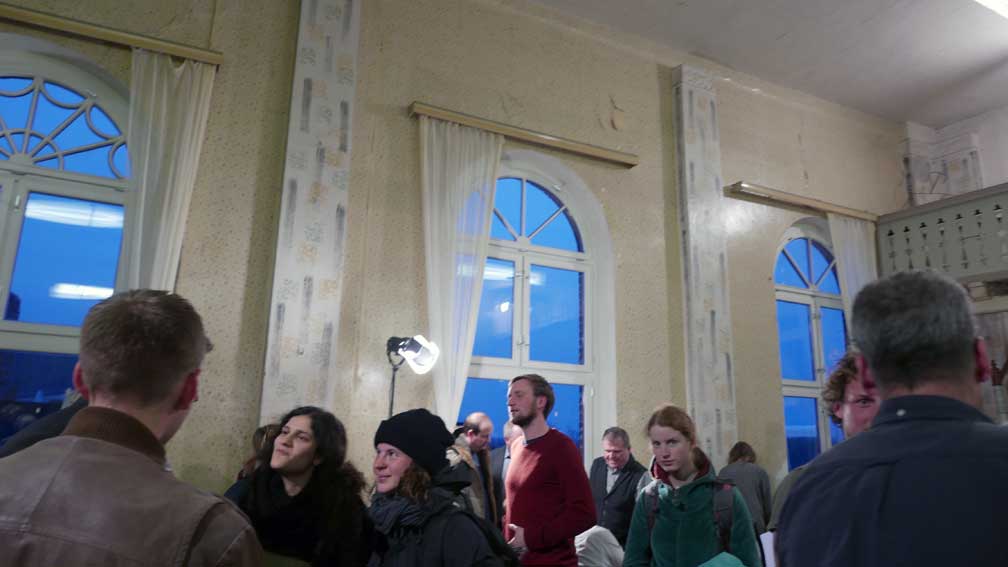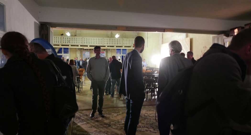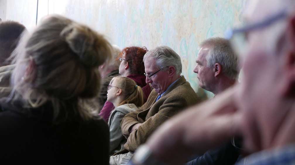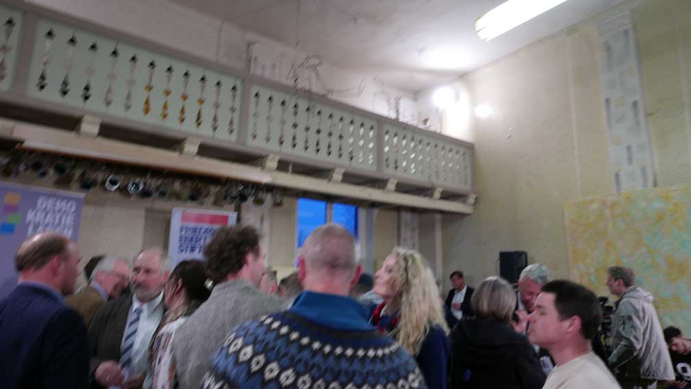 Versammlung zum Thema aktuelle LandWirtschaft,Umwandlung zu Bio, in Loitz, der Stadt an der Peene bei Demmin. Bei Tucholsky dem richtigen Haus. dafür.