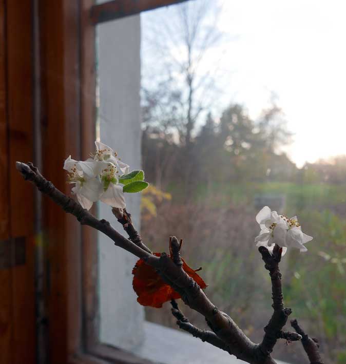 immer neue Blüten in der Wärme des Zimmers gehen auf aus dem schon draussen verloren gegebenen Baum