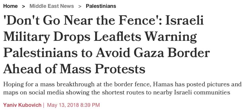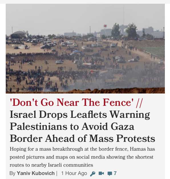 8:41 P.M. 'Don't go near the fence': Israeli military drops leaflets warning Palestinians to avoid Gaza border ahead of mass protests
