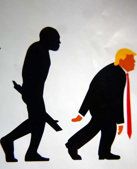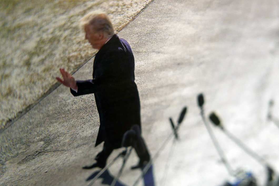 Aus dem Titel des SPIEGEL diese Woche. Es Zeigt den Mächtigsten Mann der Welt. Gebeugt, Auf der Flucht. Mit nach hinten offener Hand hinter den Rücken. Was kann der mit dem Knüppel ihm wohl gebem.