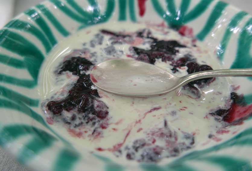 die rote Grütze aus den Beeren des Gartens. Als da sind: